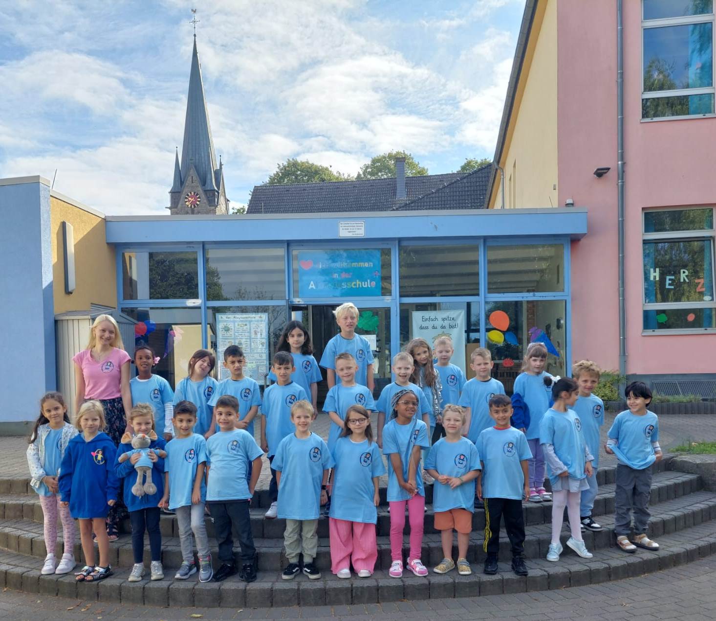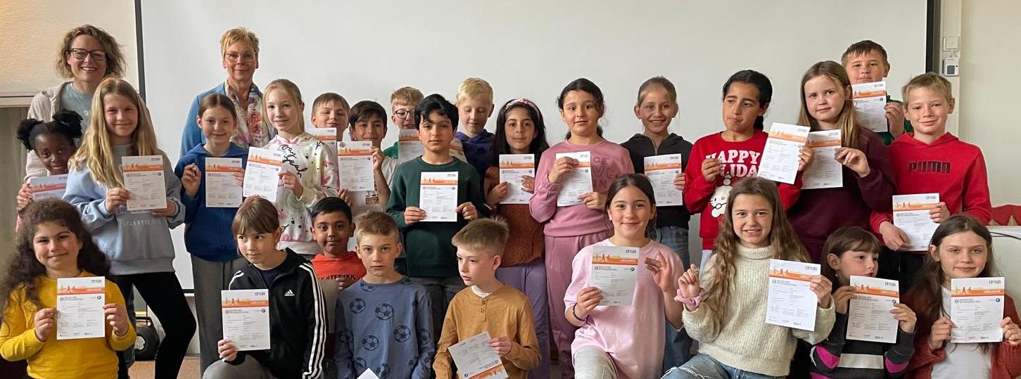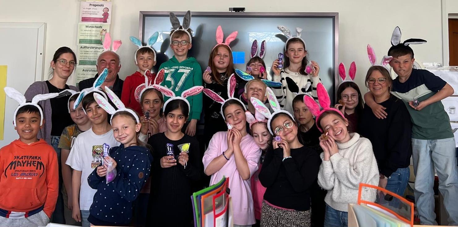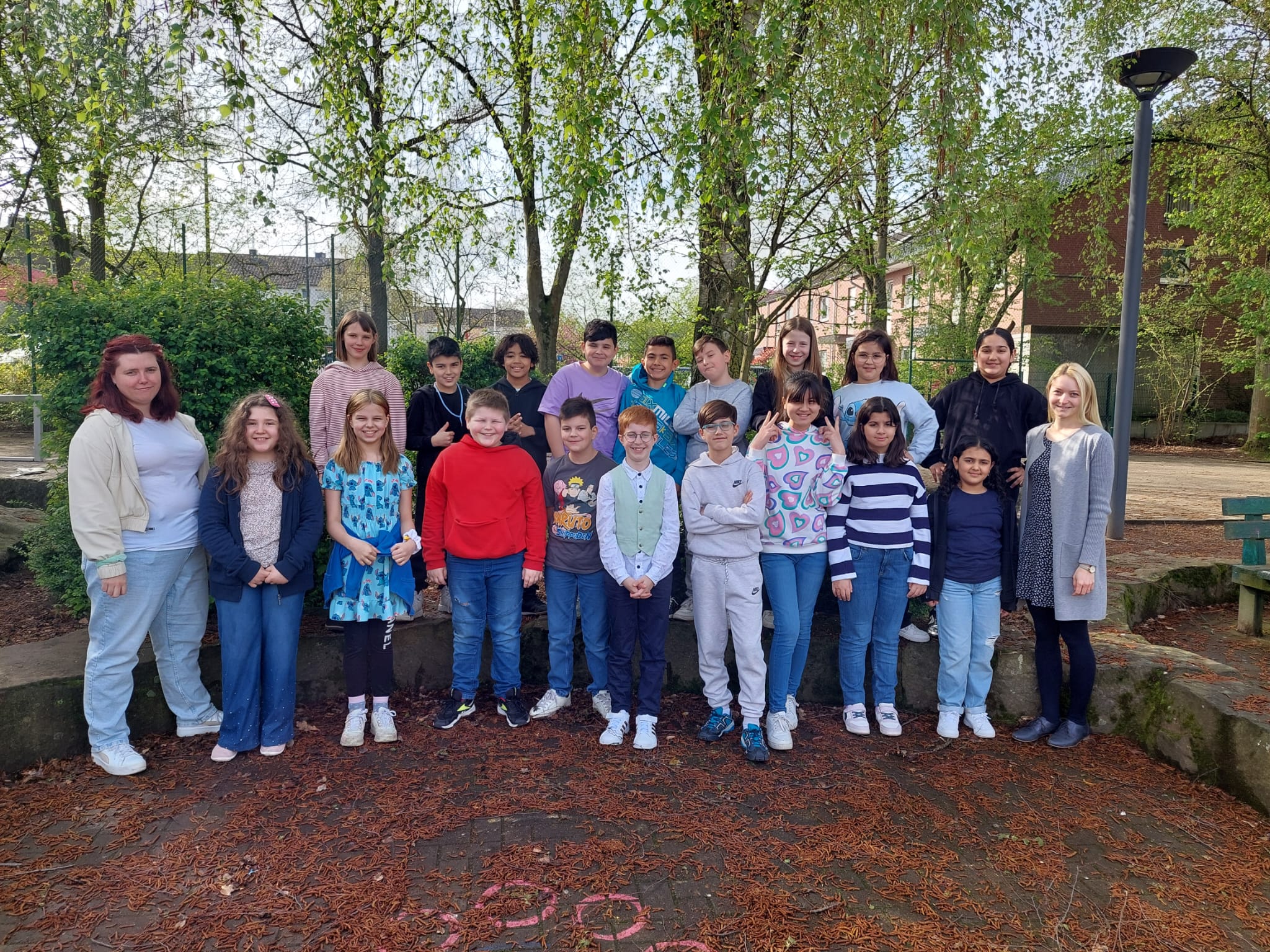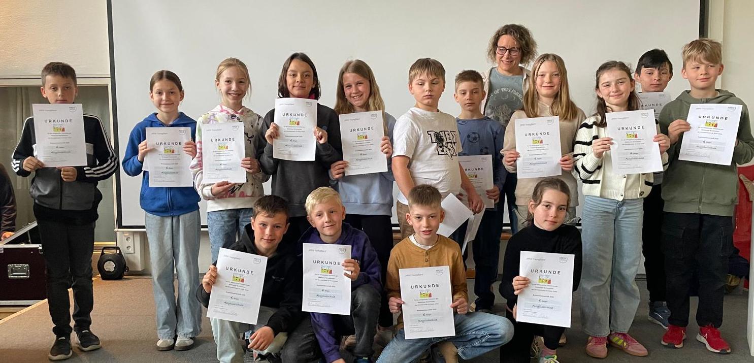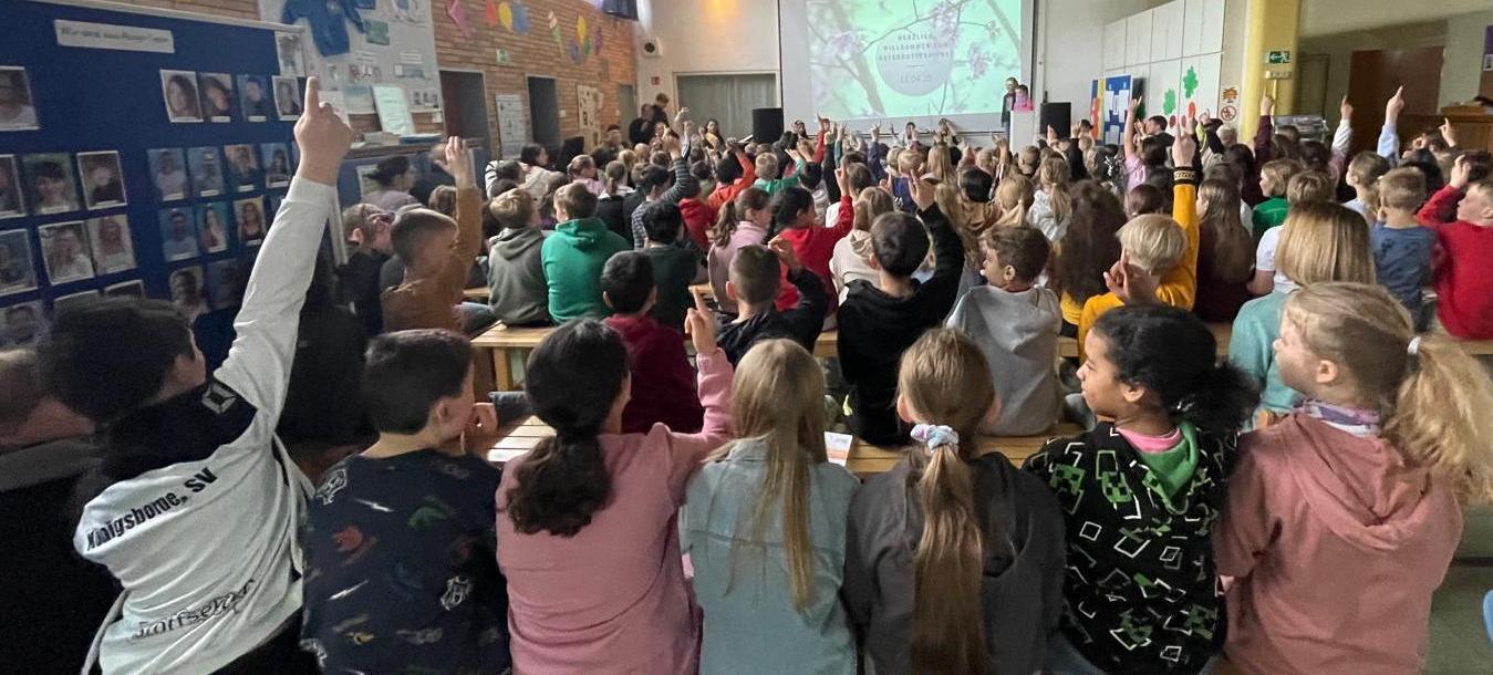die Paten aus den Klassen 4a und 4b ihre Patenkinder aus den Klassen