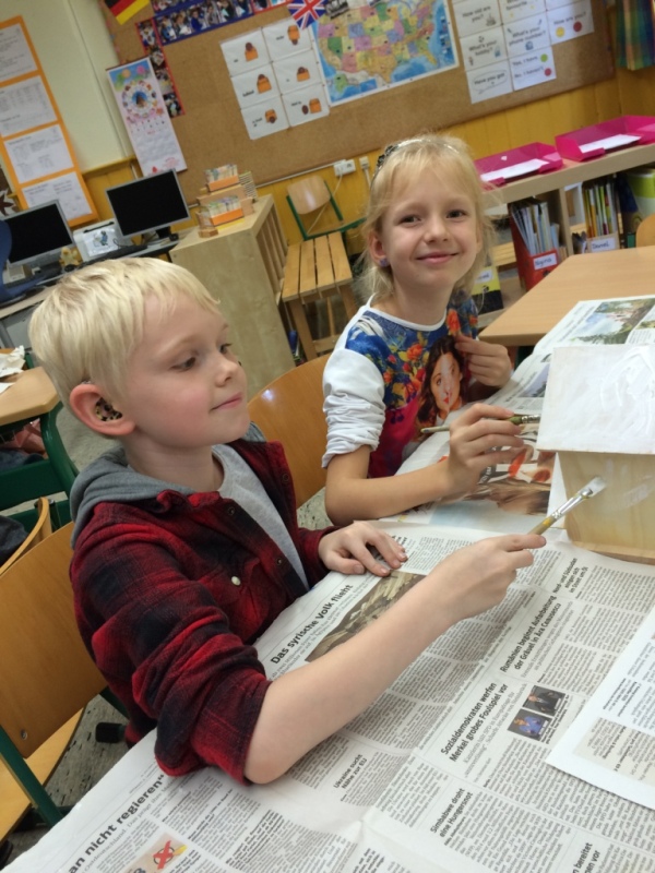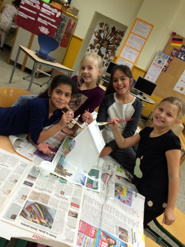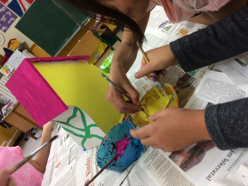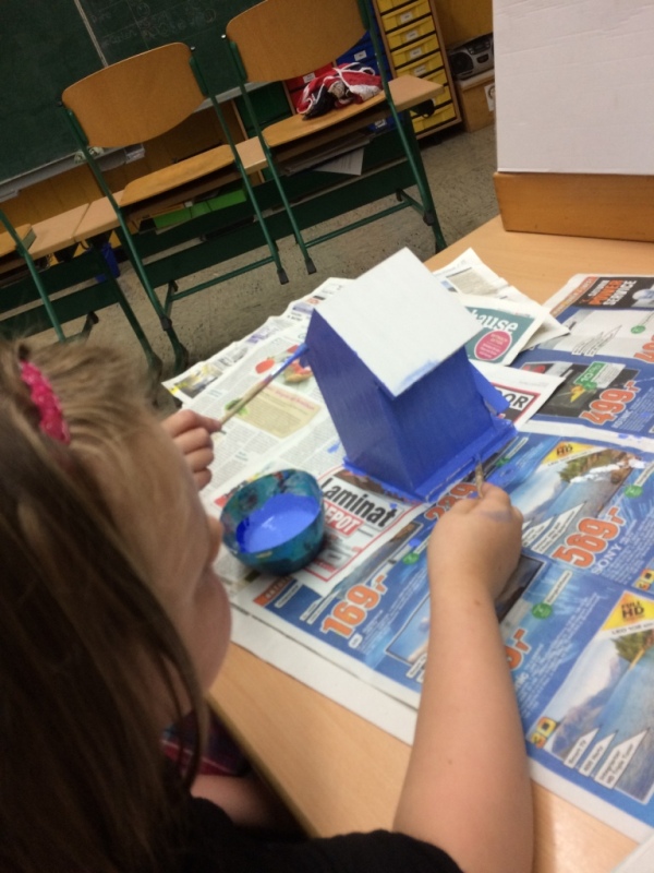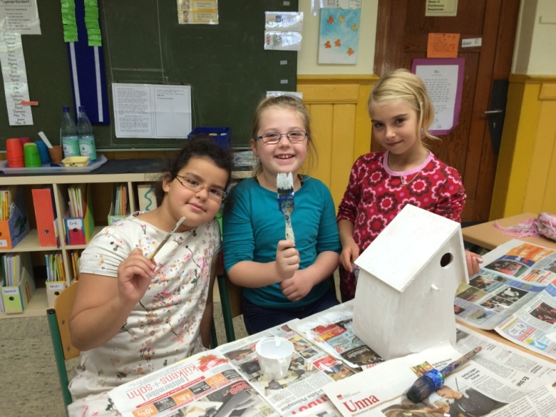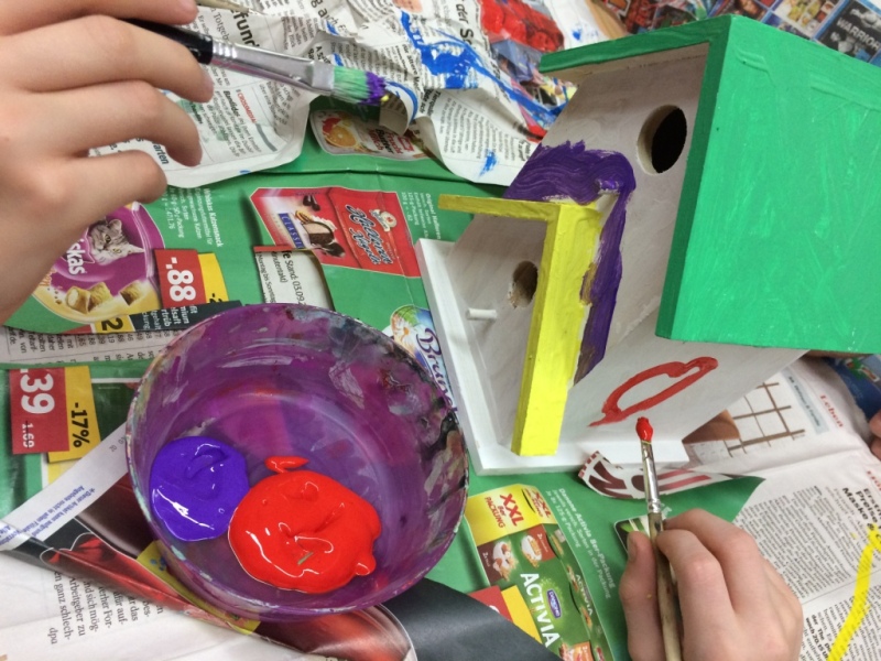 November 2015: Wir malen Vogelhäuschen an...