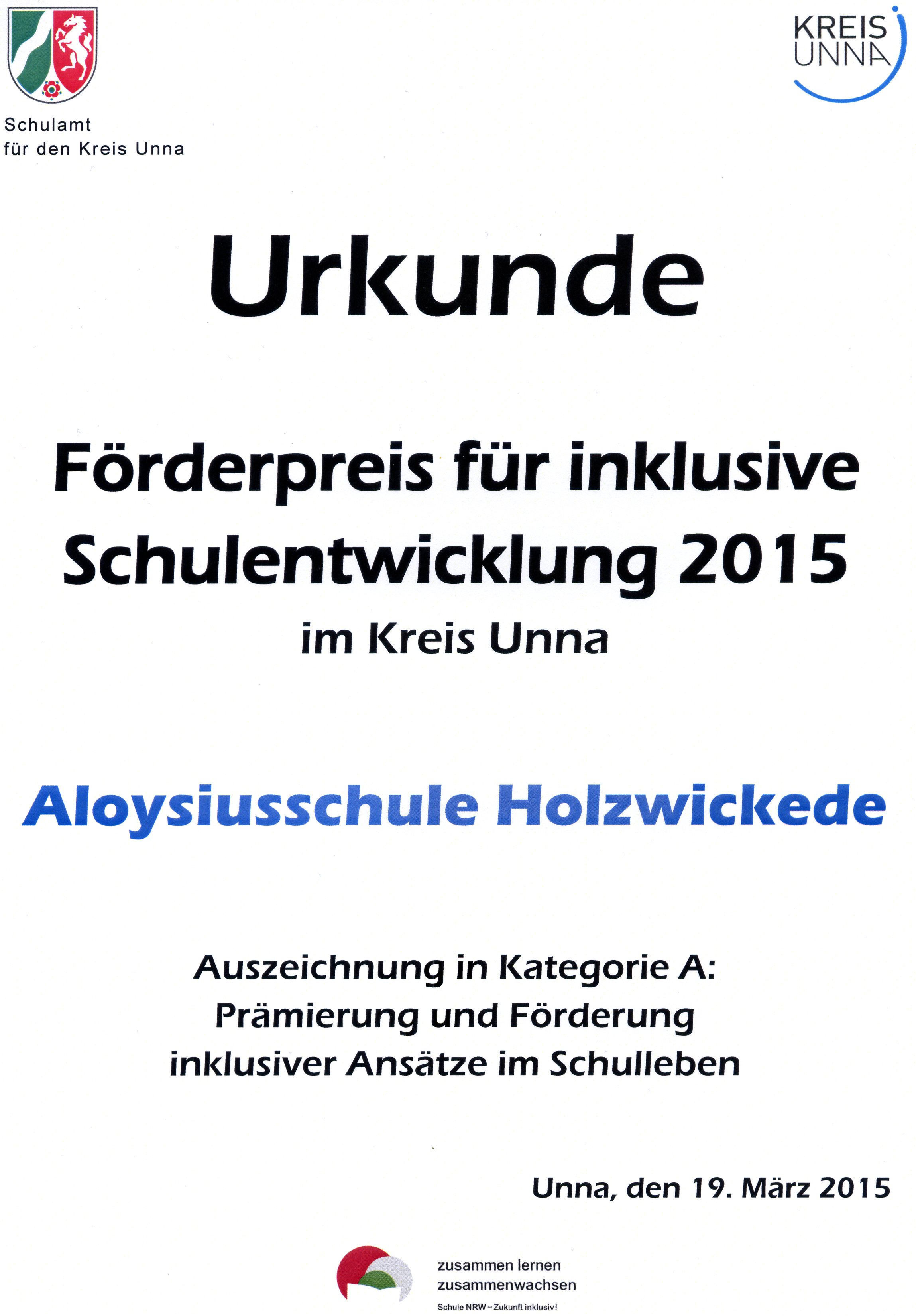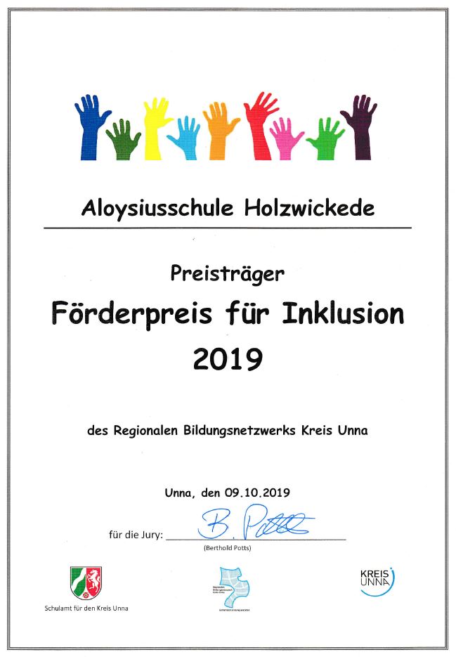 09.10.2019 - Gemeinsam mit der Karl-Brauckmann-Schule erhalten wir den Förderpreis Inklusion2019