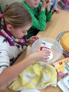 Als Nächstes rührst du den Quark in eine Schale.