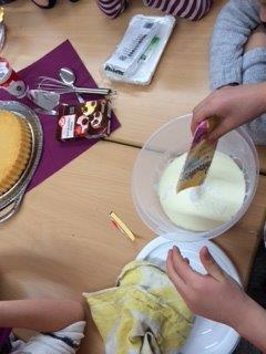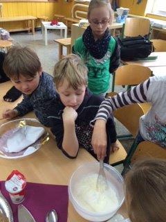 Danach gibst du etwas Milch dazu und rührst weiter,