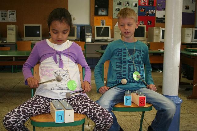 Hier seht ihr, wie die Kinder spielerisch die Tonleiter kennen lernen.