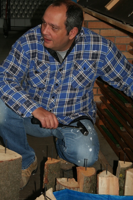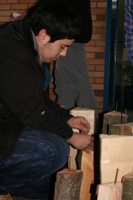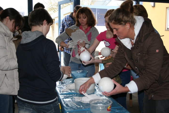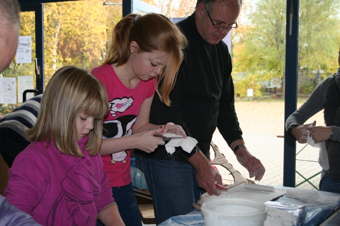 Motivierte Eltern und Schüler basteln unter Anleitung von Familie Weh
