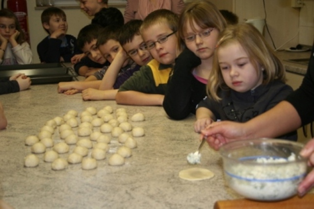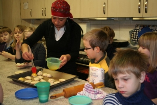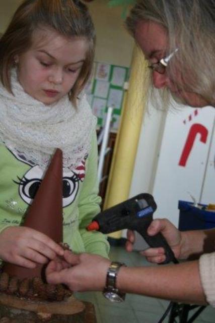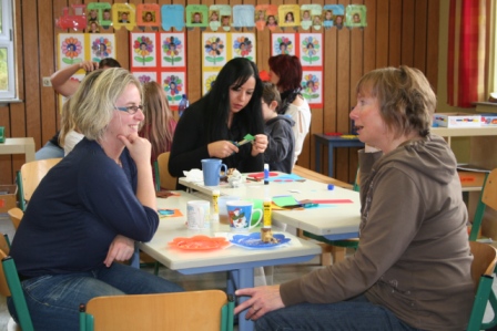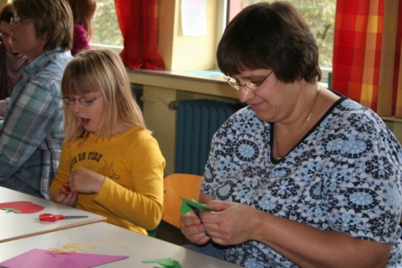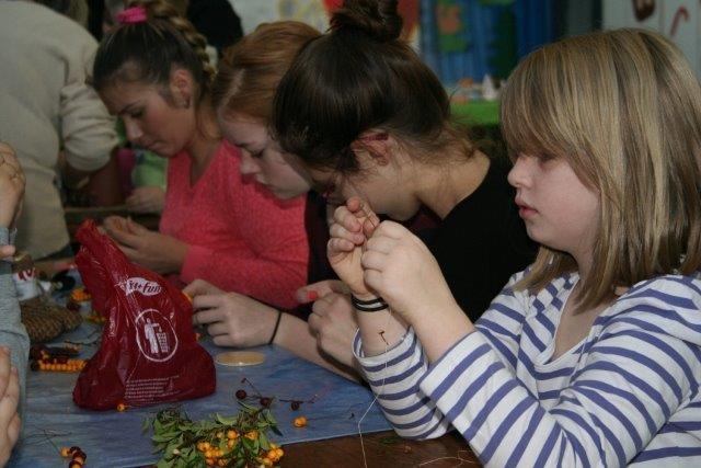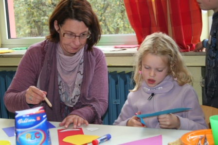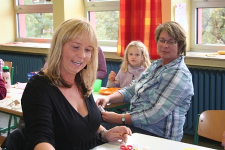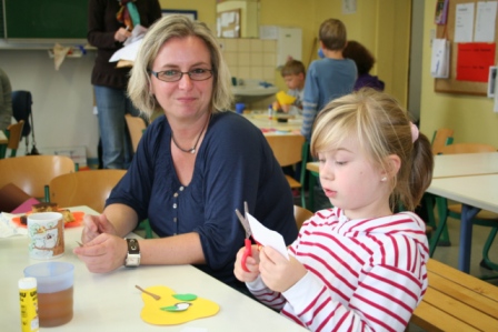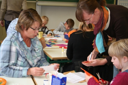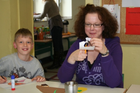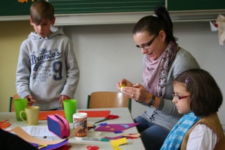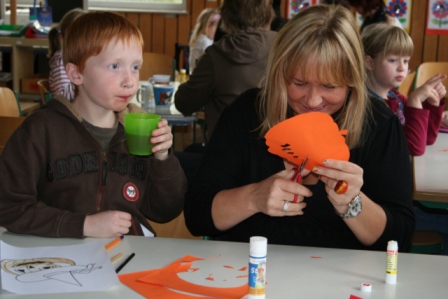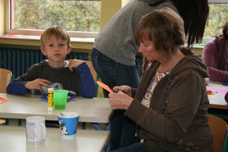 Bei Kaffee und Kuchen, Getränken und Gebäck haben mit den Eltern und Geschwistern Herbstdekorationen gebastelt.