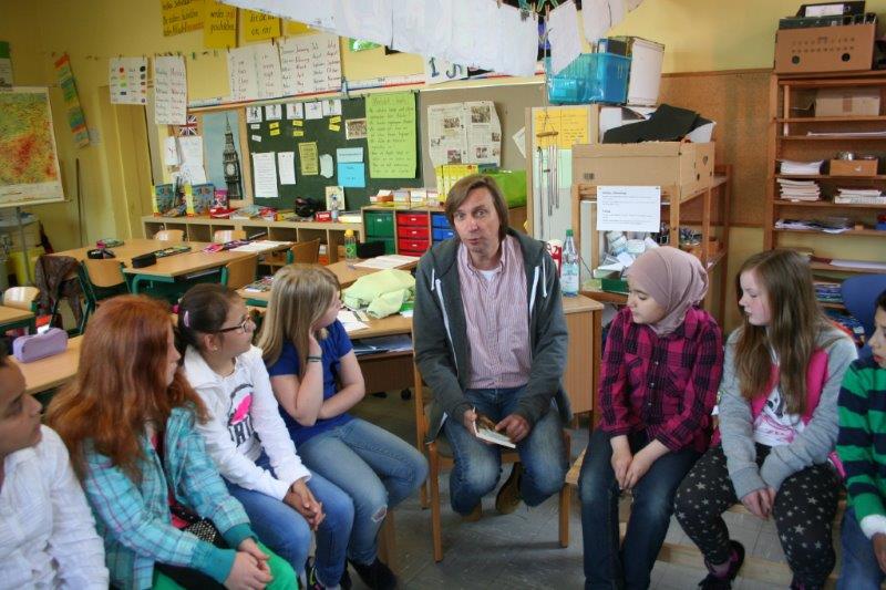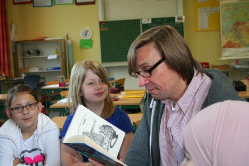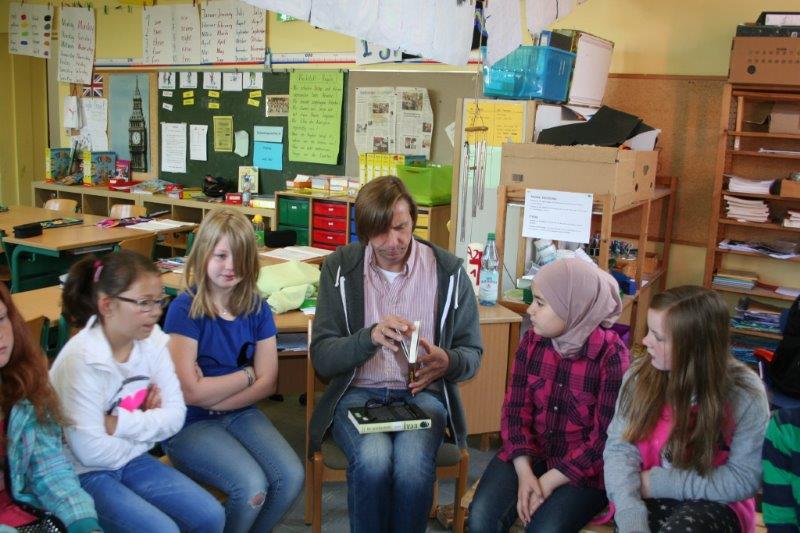 Herr Sacher hat uns aus dem Buch "Die Jagd nach dem Leuchtkristall" von Thilo vorgelesen.