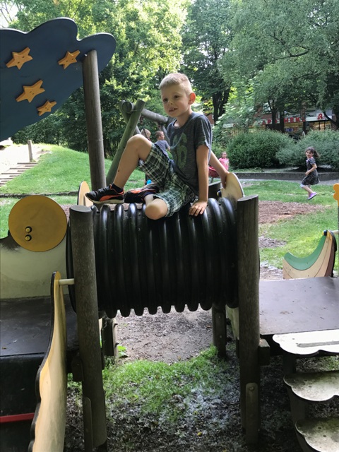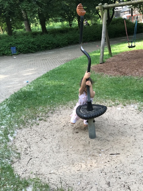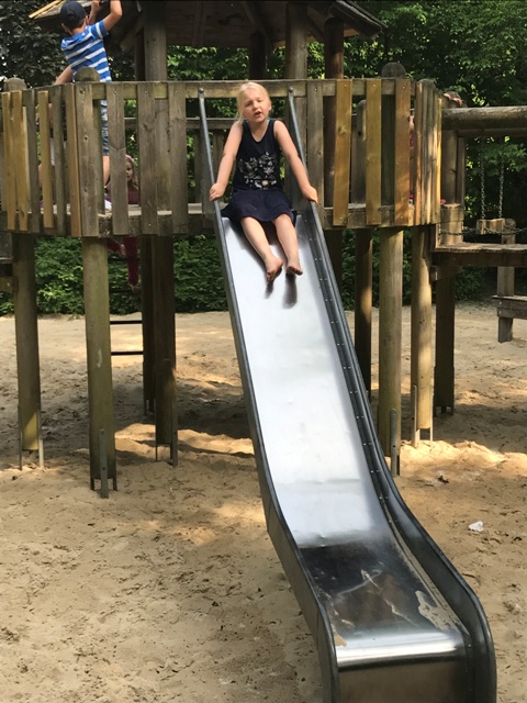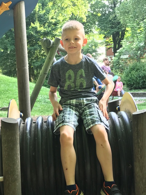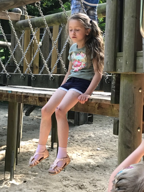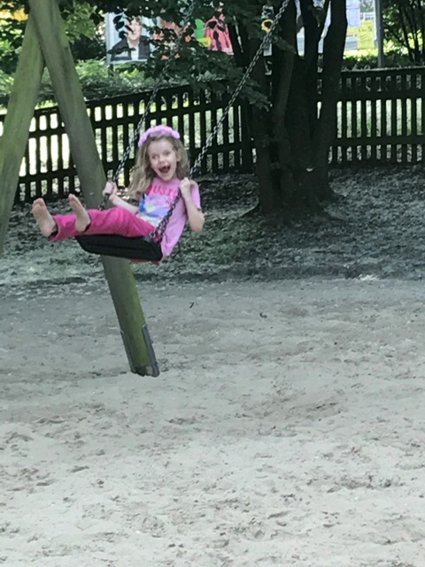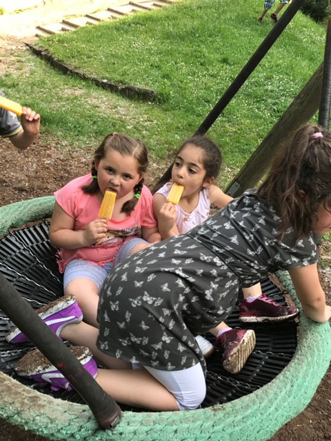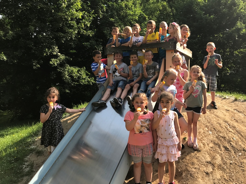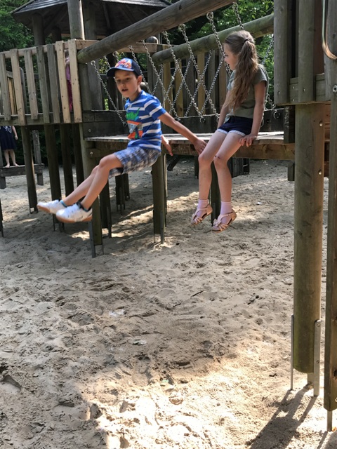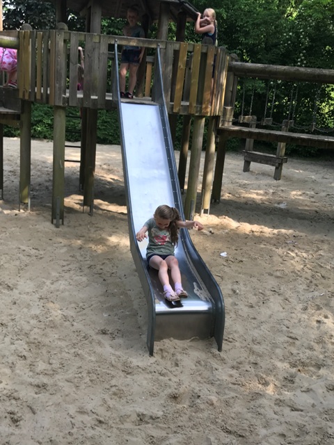 Weil es heute so heiß war, haben wir ein bisschen Sport im Schatten der Bäume auf dem Spielplatz gemacht.
