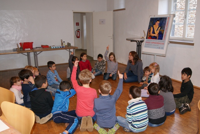 Am 3.11.2016 wanderten wir nach Opherdicke um uns die tolle Ausstellung von Conrad Felixmüller anzuschauen. Wir wurden von Frau Dolezych schon erwartet. Sie hat uns viel über die Werke erzählt. Nach dem Museumsgang durften wir unser eigenes Winterbild malen. Nach vollbrachter Tat sind wir wieder zu Fuß den Rückweg angetreten. So schön sind unsere Werke geworden.