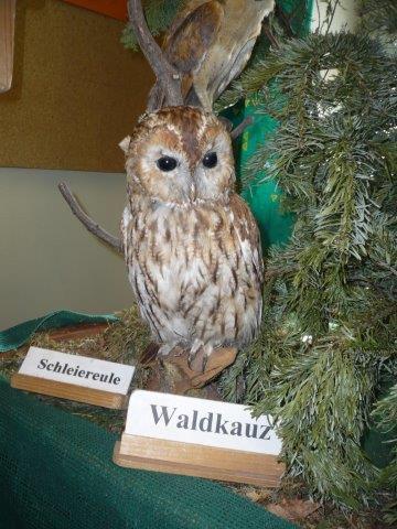 Waldkauz, Schleiereule, Sperber, Eichelhäher, Rebhuhn, Baummarder, Wildschwein (Frischling),
