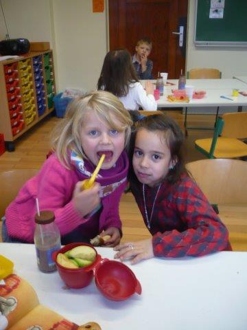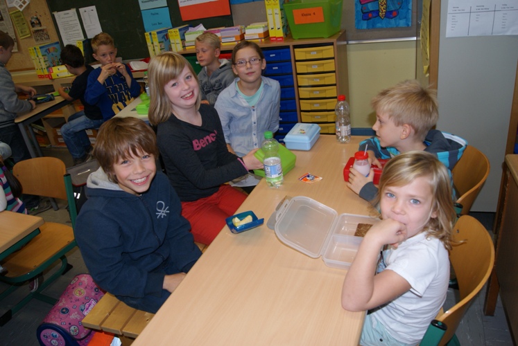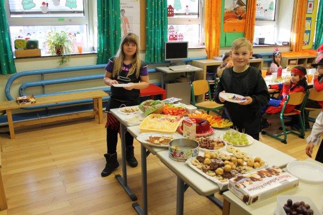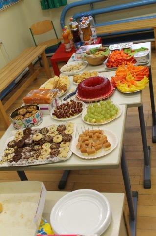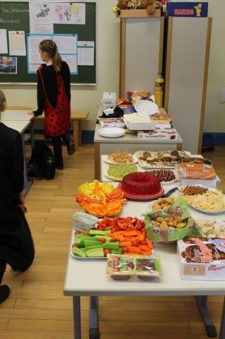 In der 3. Stunde durften wir uns dann endlich am Büfett in der Pausenhalle bedienen.