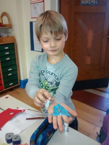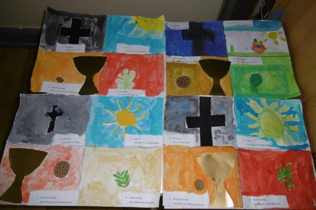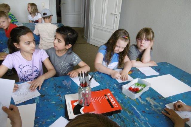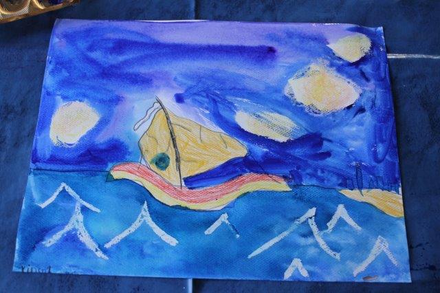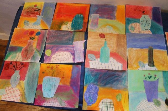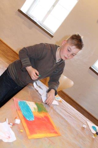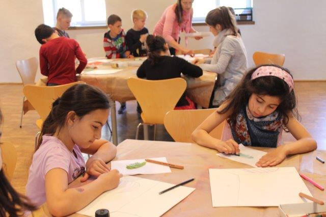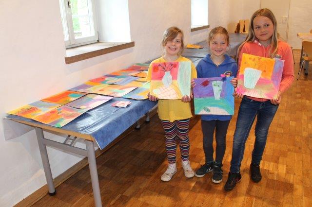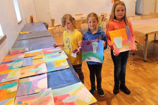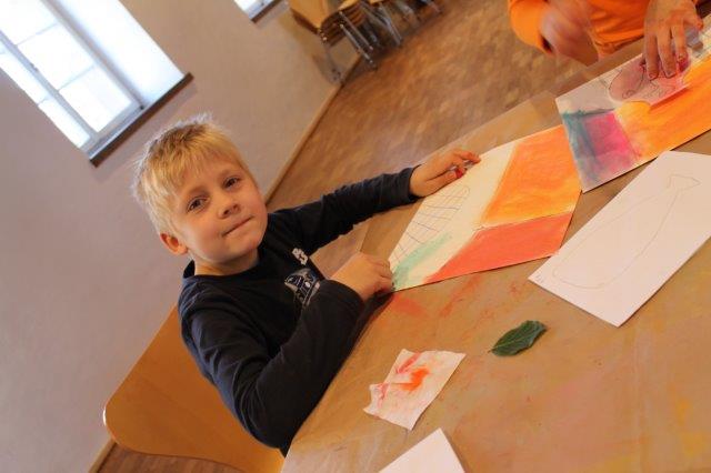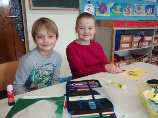 mit einem Foto ergänzt und zum Schluss mit Aquarellfarben ausgestaltet. Wir sind stolz auf unsere Kunstwerke!