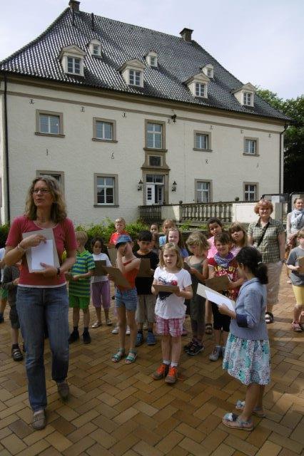 Vor dem Schloss Opherdicke empfing uns die Museumspädagogin Frau Schmidt.