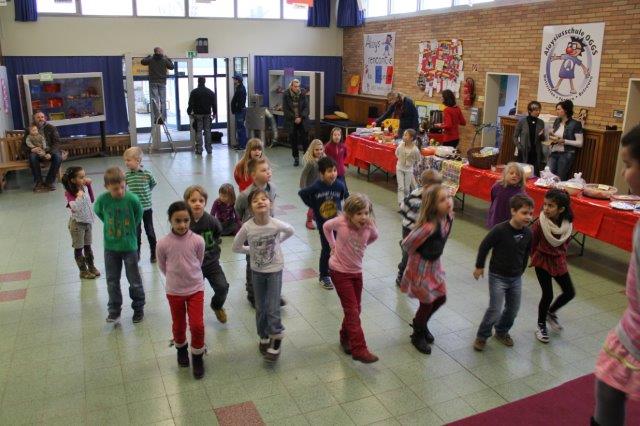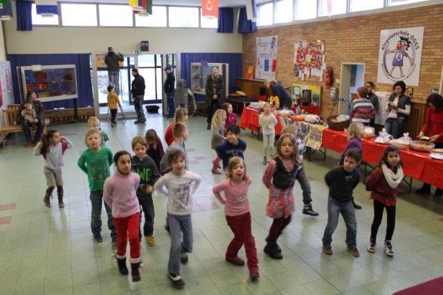 Alle Klassen begannen gemeinsam mit diesem griechischen Tanz auf dem Schulhof.