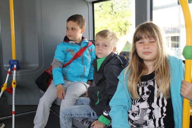 Die Busfahrt gefiel uns gut. Viele Kinder wollten noch gar nicht aussteigen,