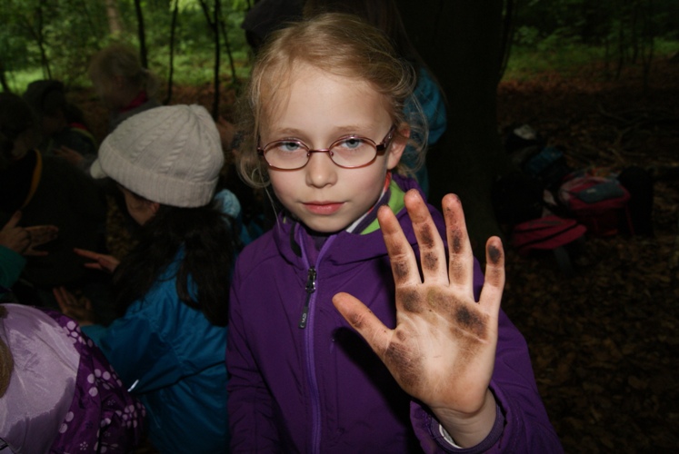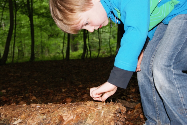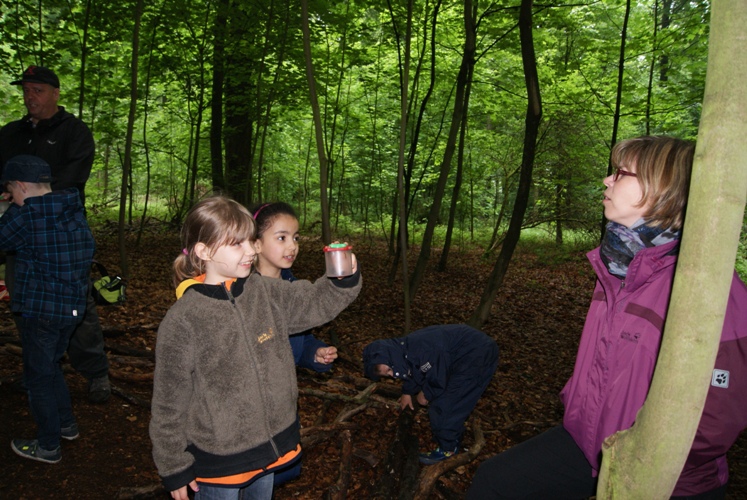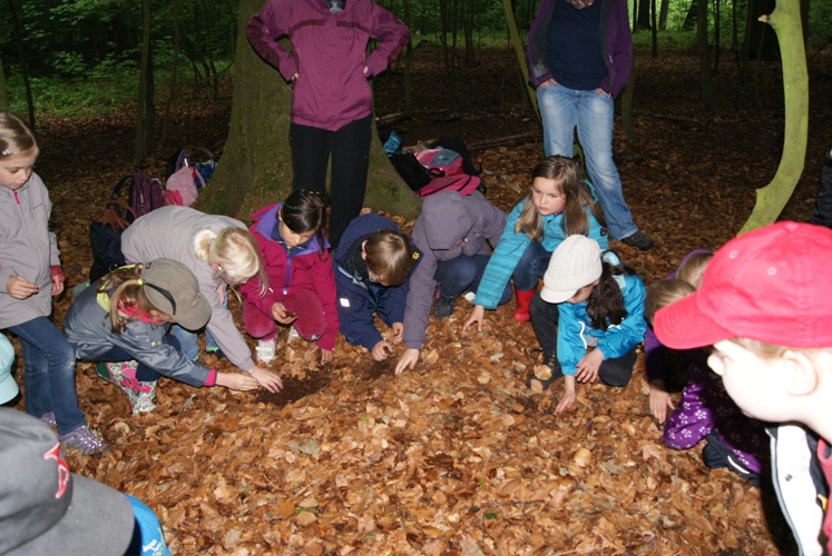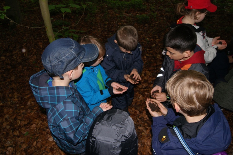 Die mutigen Kinder der Aloysiusschule durchforsteten mit ihren Händen den Waldboden, Hölzer und Gräser.