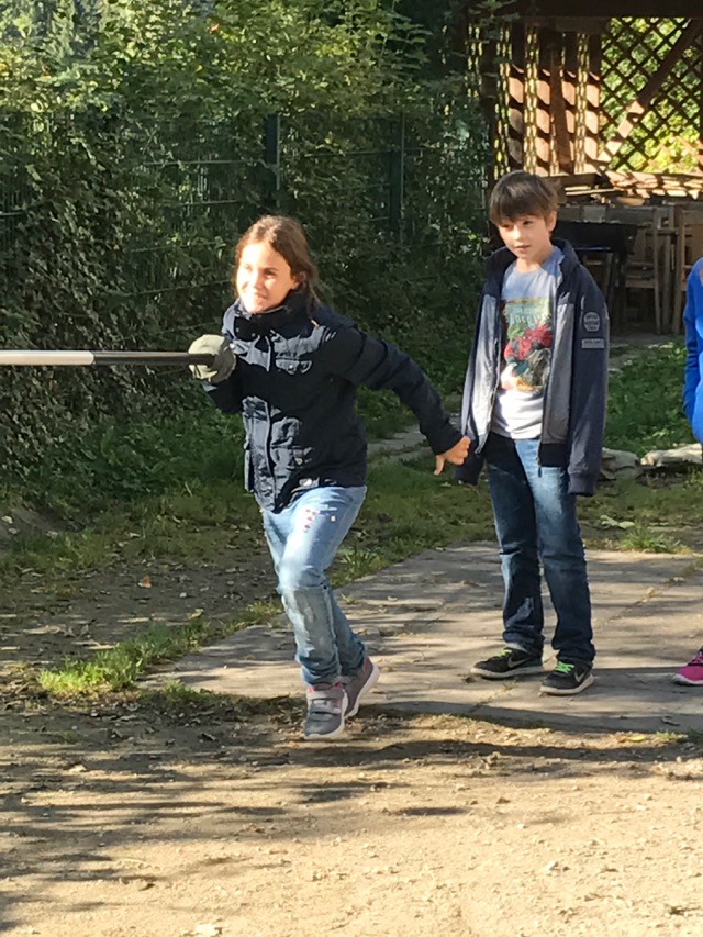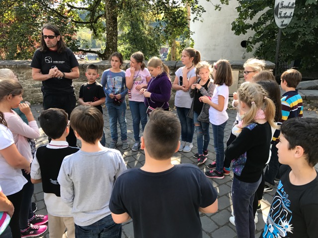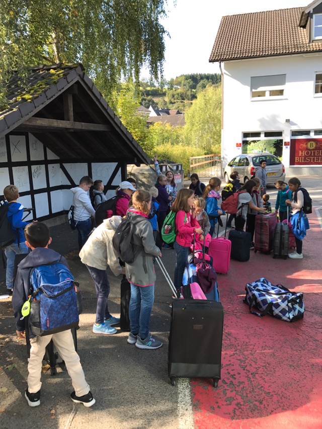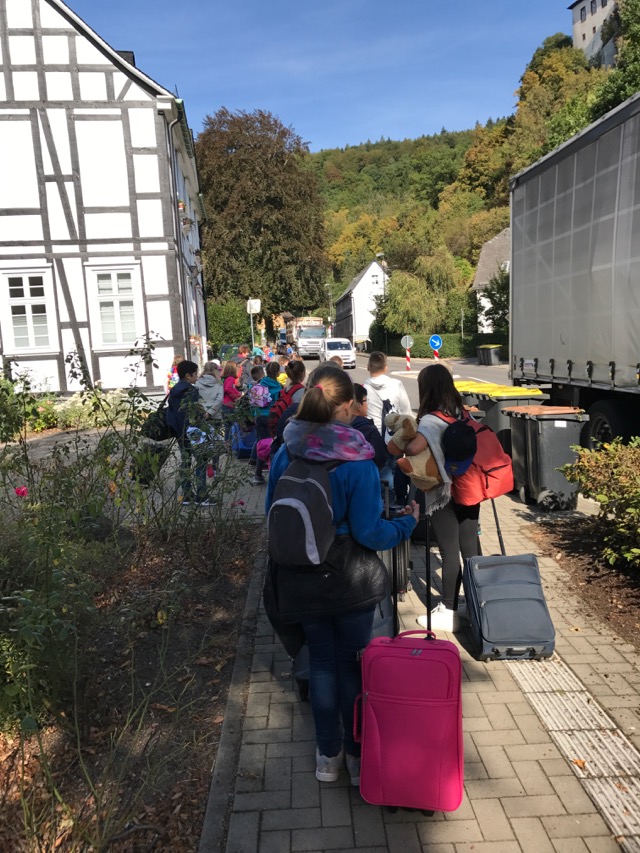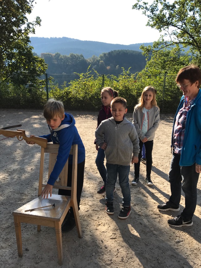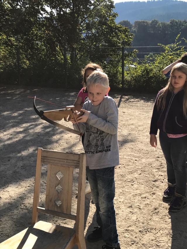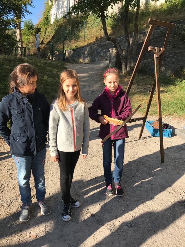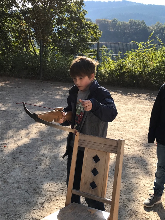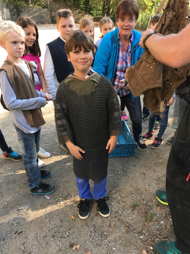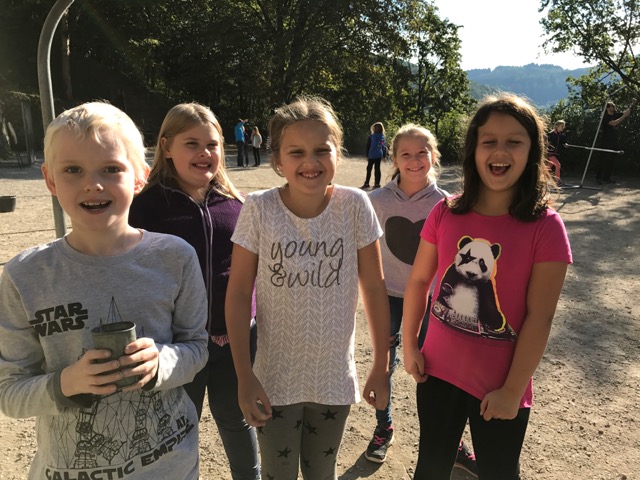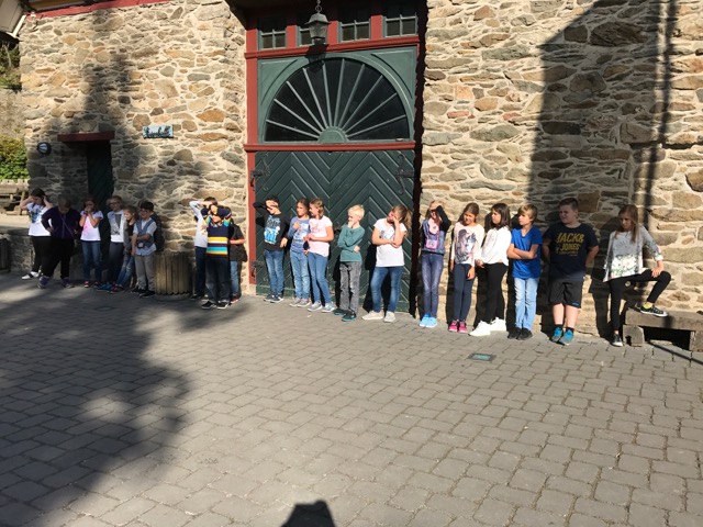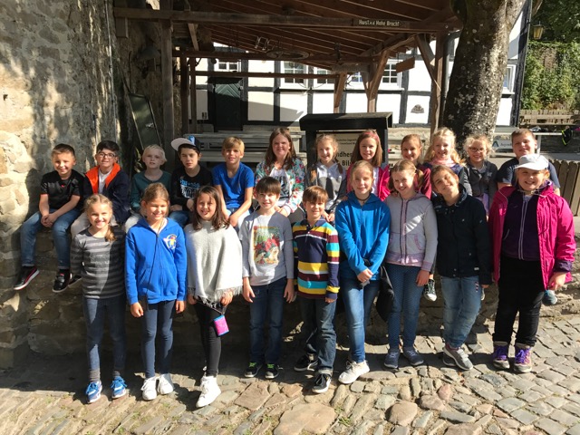 Wir sind im September zur Burg Bielstein gefahren, um dort drei aufregende Tage zu verbringen. Die Busfahrt war noch ein wenig vom Heimweh geprägt. Doch sobald die Burgzinnen in Sicht waren, war das Heimweh wie weggeflogen. Wir bezogen unsere Zimmer in der Burg und erkundeten ersten mal die Umgebung. Gemeinsam besuchten wir den Folterkeller und übten uns in Ritterspielen. Zum Abschluss der Spiele durften wir uns in eine echte Ritterkluft kleiden. Puh, war die schwer!!!! Später gab es noch eine Nachtwanderung, wo uns manchmal ganz schön mulmig im dunklen Wald wurde. Leider gingen die Tage sehr schnell vorbei. Am letzten Abend nahmen wir an einem Rittermahl teil, dass von „echten“ Knappen serviert wurde. Auf dem Rückweg haben wir noch die Attahöhle besucht. Es war eine tolle Zeit, die wir alle gemeinsam genießen durften.