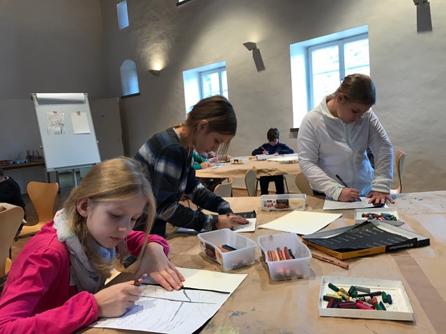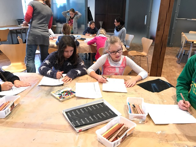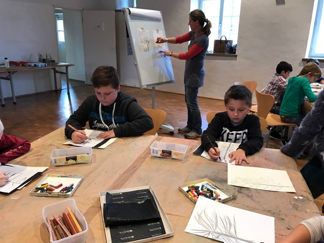 Nach gemeinsamer Wanderung zum Schloss Opherdicke, haben wir uns die Ausstellung zu den Werken von Conrad Felixmüller angeschaut. Dort gab es wunderschöne Portraits, fantasievolle Landschaften und vieles mehr zu sehen. Anschließend fertigten wir Skizzen von Winterbäumen nach einer Vorlage von Conrad Felixmüller an. Diese wurden übertragen und wir durften eine wunderschöne Winterlandschaft gestalten. Wir haben viel über warme und kalten Farben, sowie über Perspektiven beim Malen gelernt.