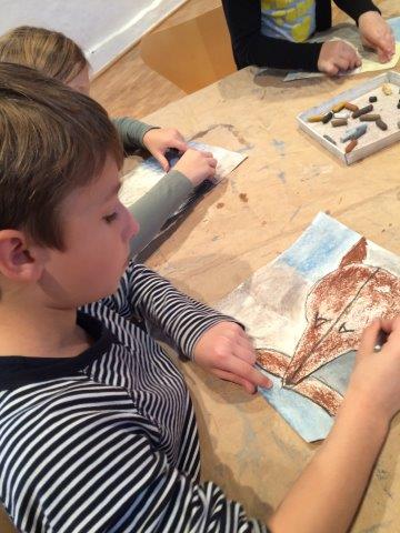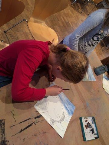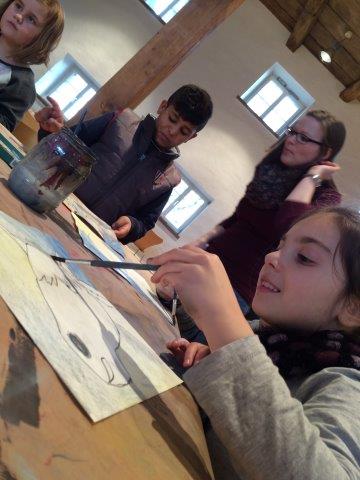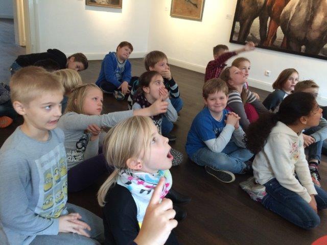 Am 17.11.2015 machten wir uns auf den Weg zum Schloss Opherdicke. Aufgrund des nassen Herbstwetters fuhren wir mit dem Bus. Frau Dolezych begrüßte uns und führte uns durch die schöne Ausstellung. Sie zeigte uns wie man „kinderleicht“ tolle Tiere zeichnen kann. Nachdem unsere Skizzen fertig waren kamen die Farben ins Spiel. Mit viel Freude entstanden dabei diese tollen Kunstwerke!