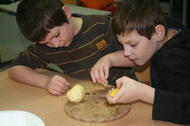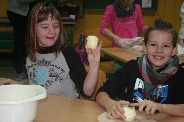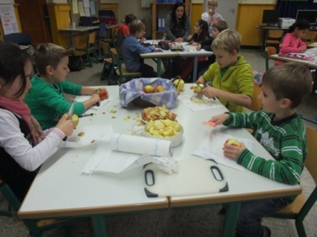 Wir untersuchten den Apfel, lernten etwas über Querschnitt und Längschnitt,