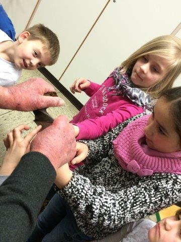 Unsere liebe Frau Lethaus hatte eine ganz gefährliche Verletzung und konnte lange nicht zur Schule kommen.