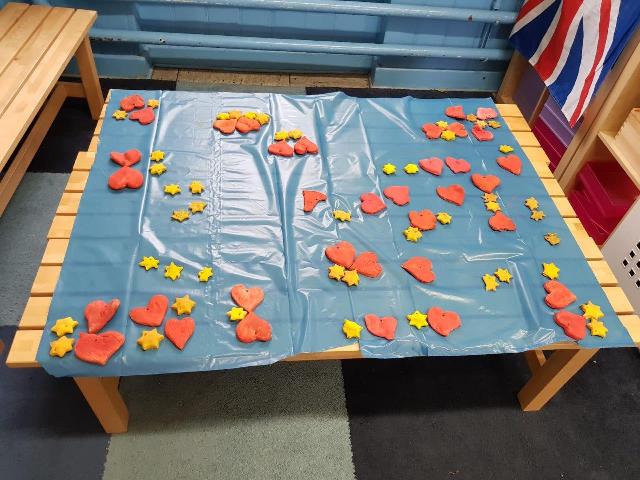 weihnachtlich dekoriert, Weihnachtsgeschenke gebastelt, Salzteigherzen