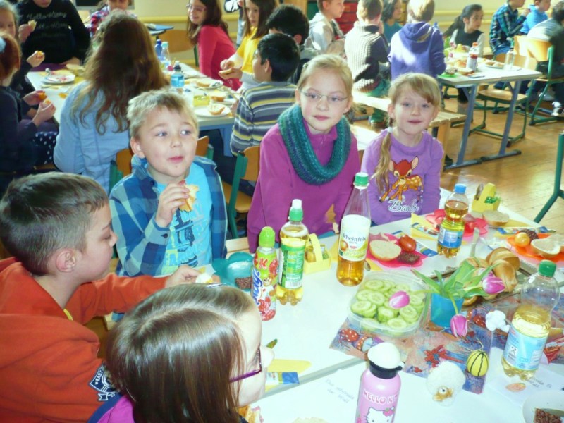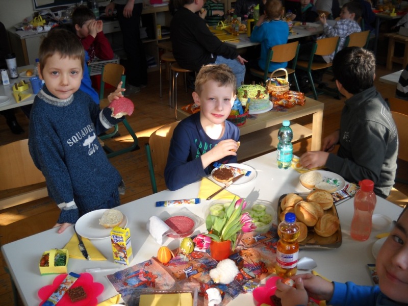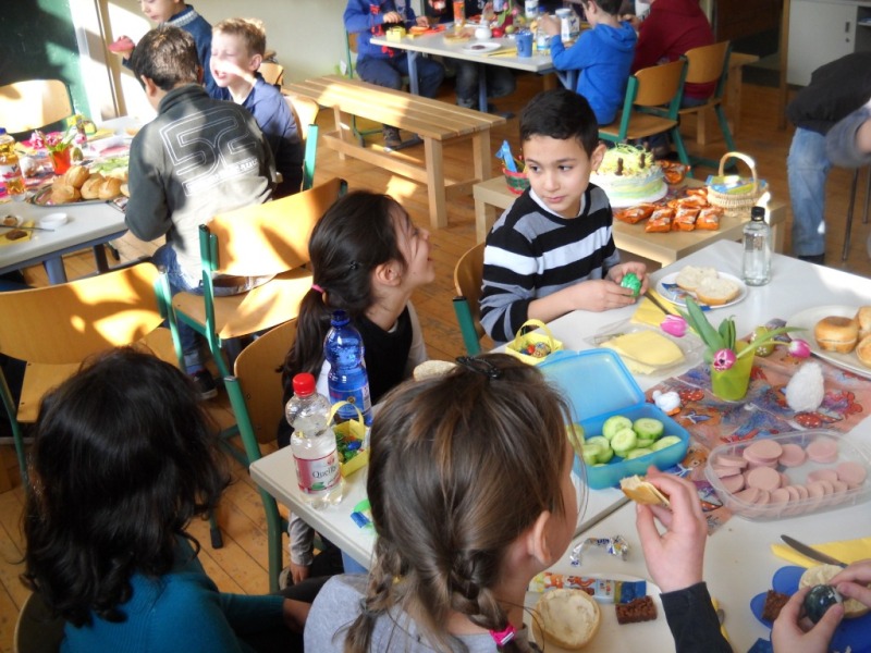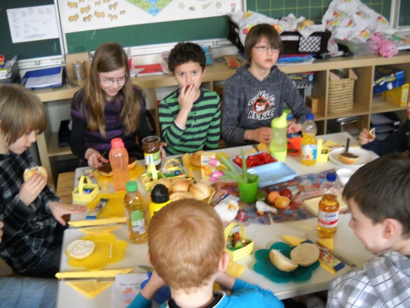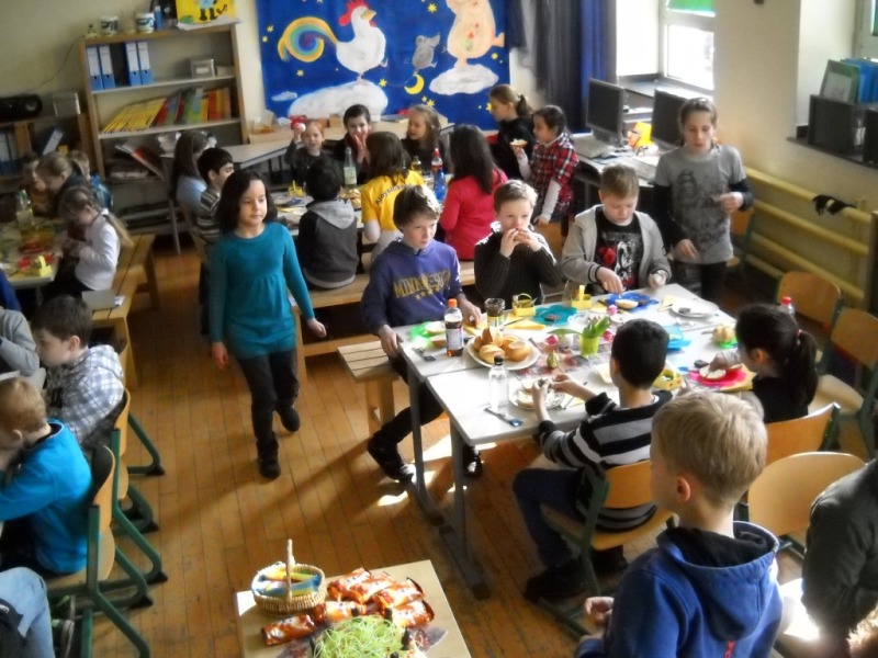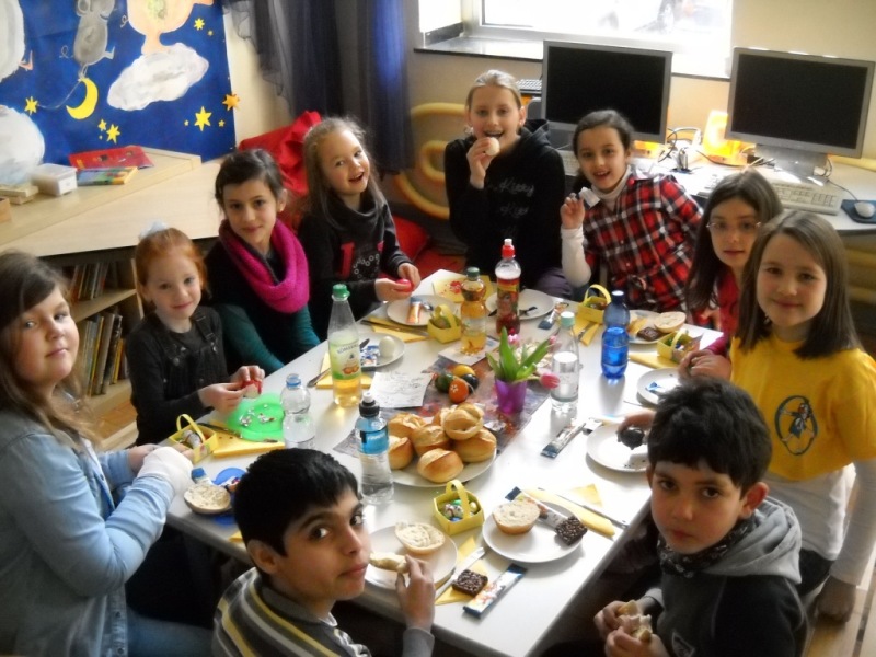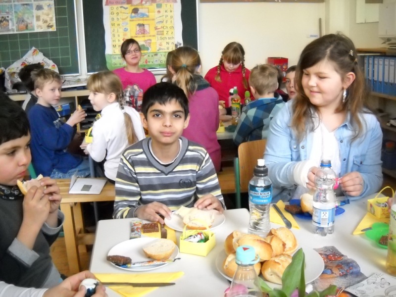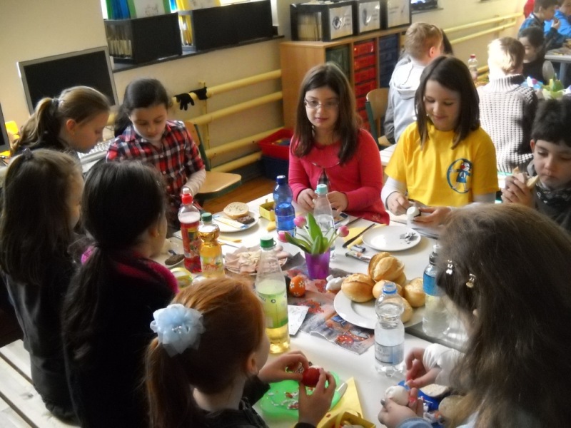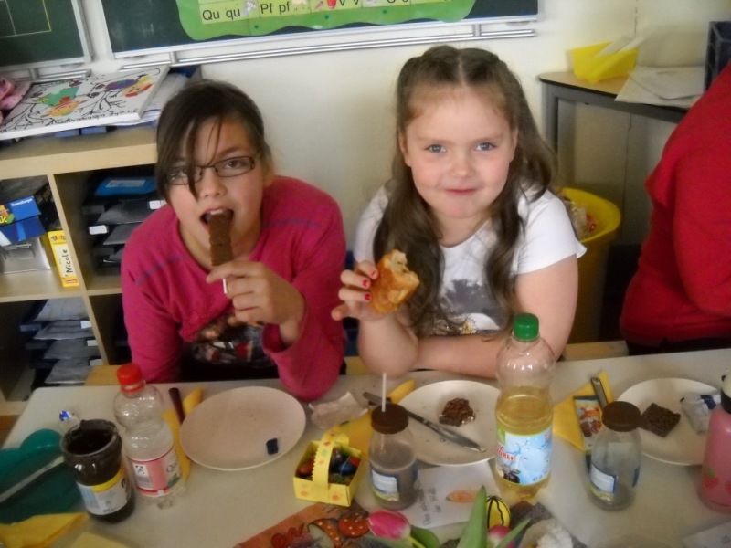 Heute haben wir unsere Paten, die Klasse 4b, zum Osterfrühstück eingeladen.