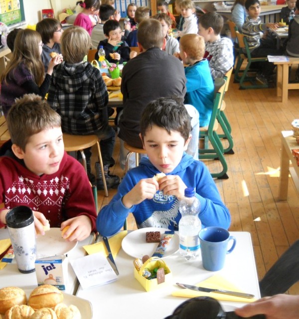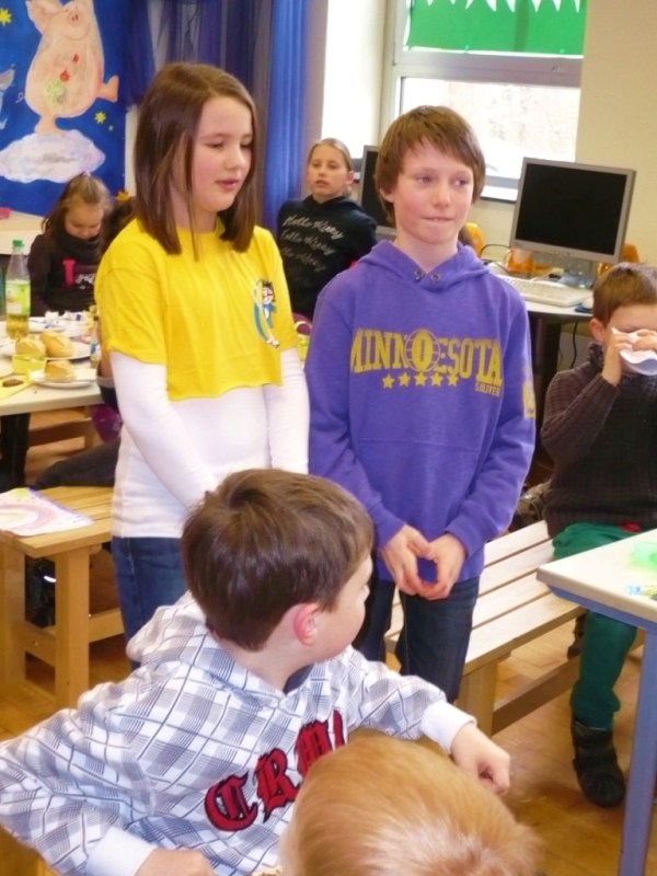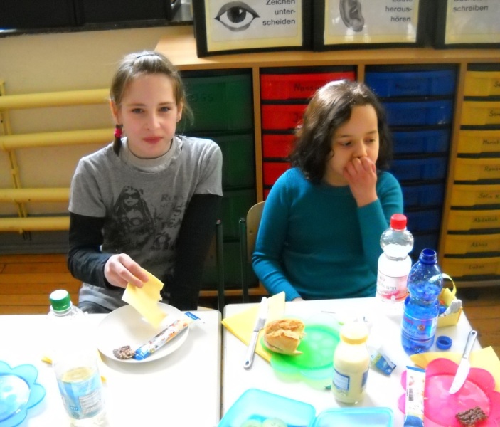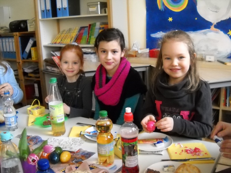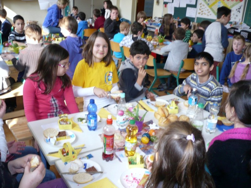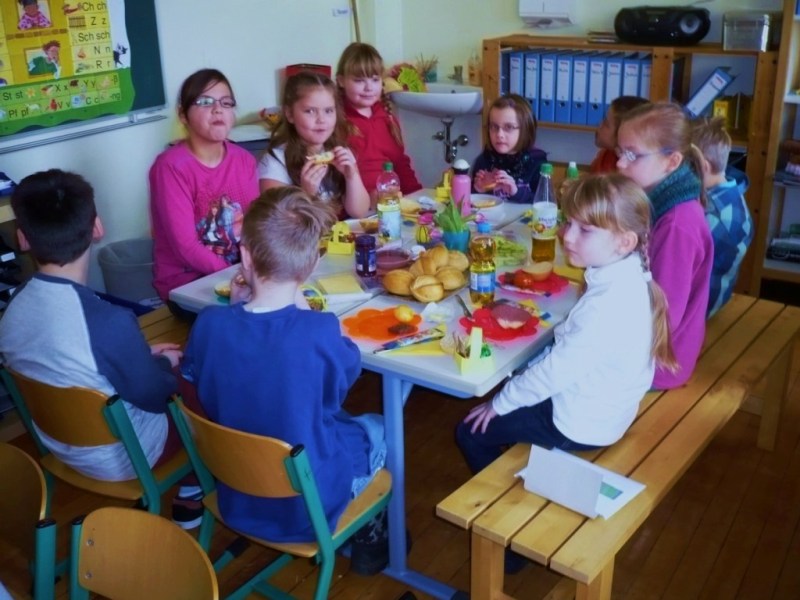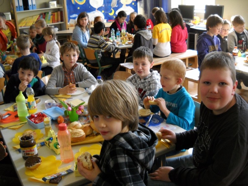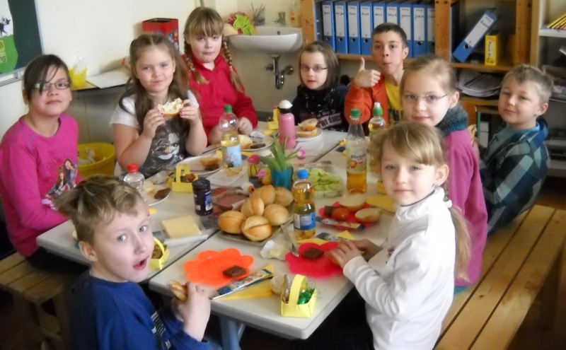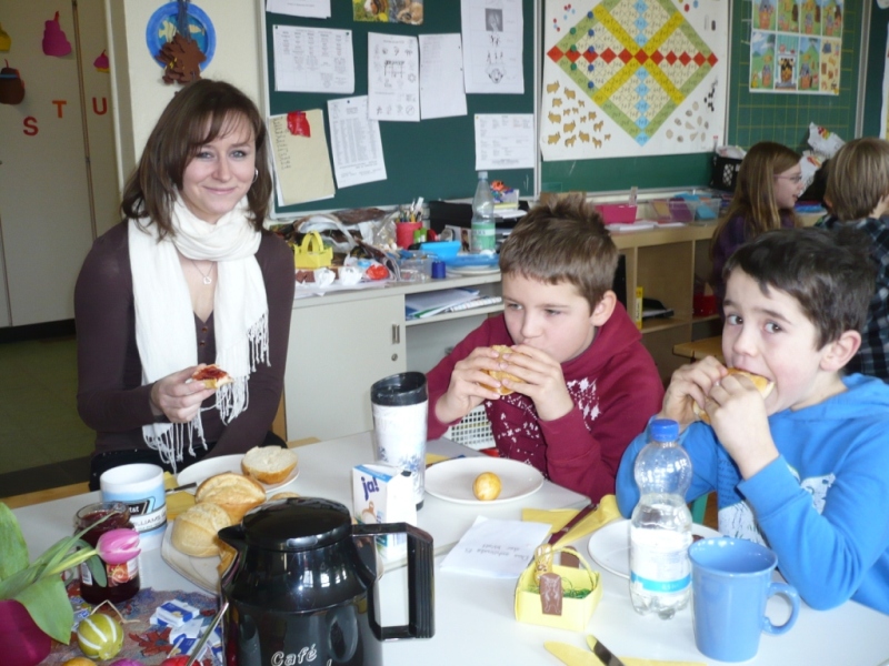 Heute haben wir unsere Paten, die Klasse 4b, zum Osterfrühstück eingeladen.