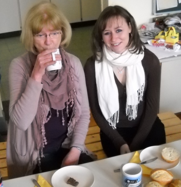 Jeder hat etwas mitgebracht und wir haben die Tische gedeckt und dekoriert.