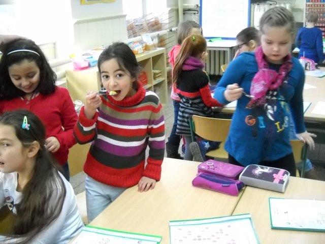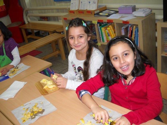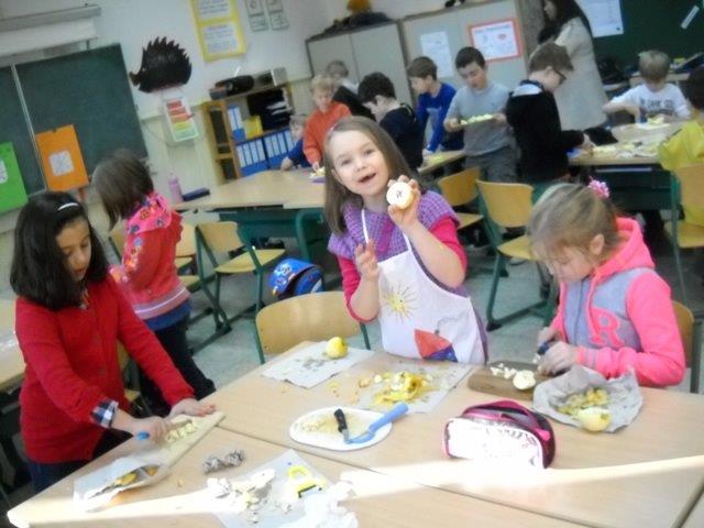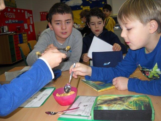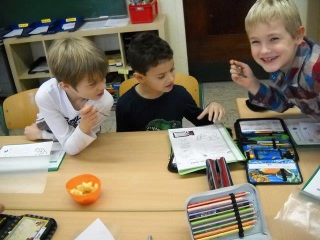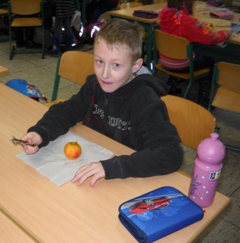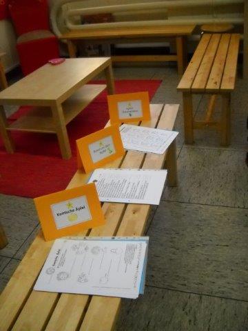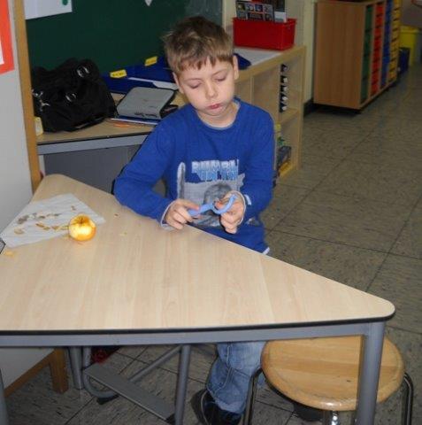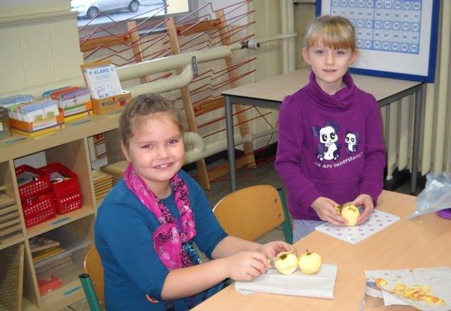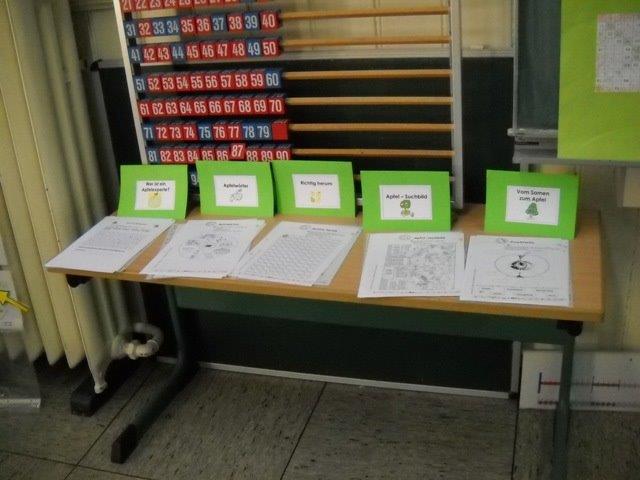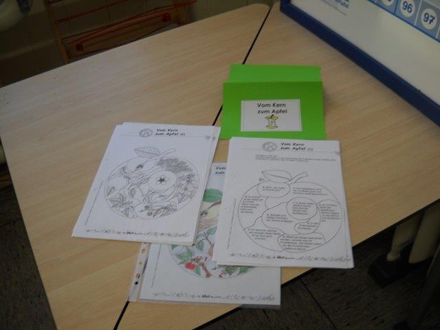 Sie hat eine Apfelwerkstatt für uns vorbereitet, in der wir viele Lernmöglichkeiten haben.