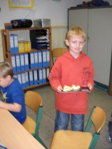 Mit dem restlichen Apfelmus backt Luca uns für morgen einen Apfelkuchen.