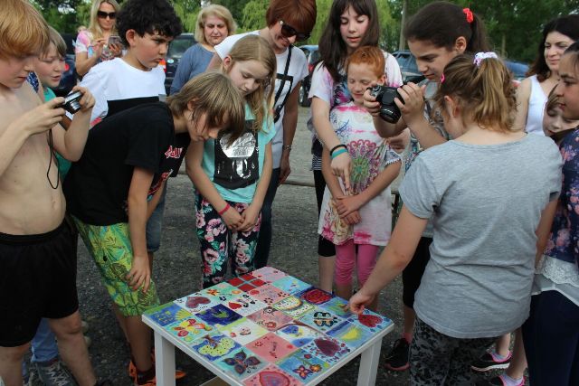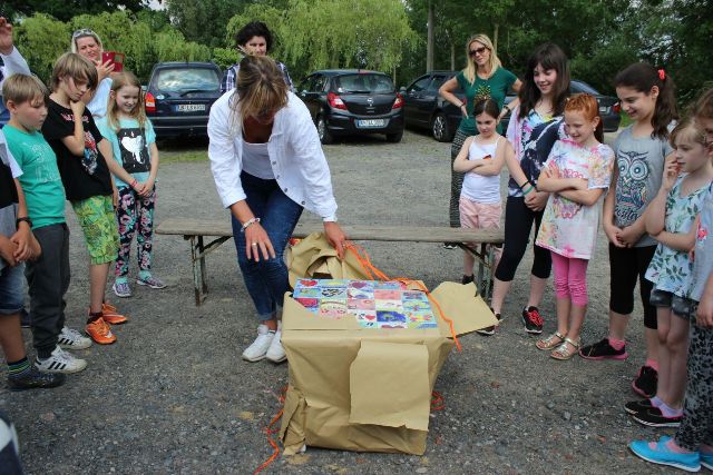 Ich danke unseren Kindern und allen Eltern ganz herzlich für diese tolle Überraschung und das wunderschöne Geschenk! Passend zu meiner Bank habe ich nun einen Tisch, gestaltet von der ganzen Klasse. :)