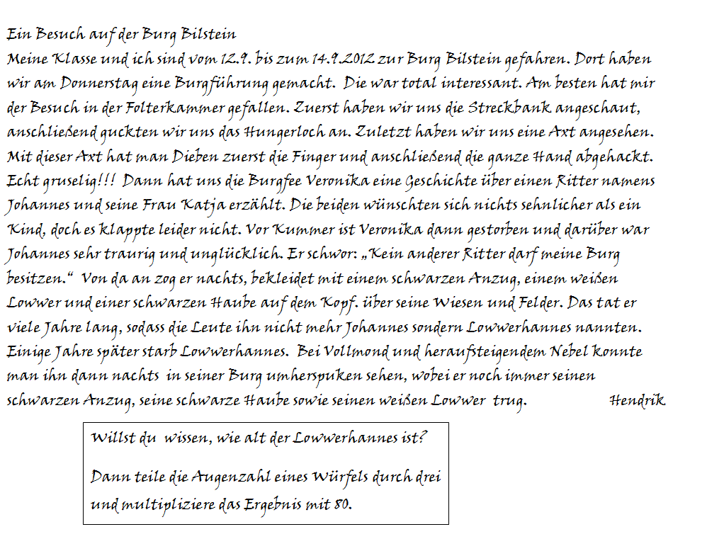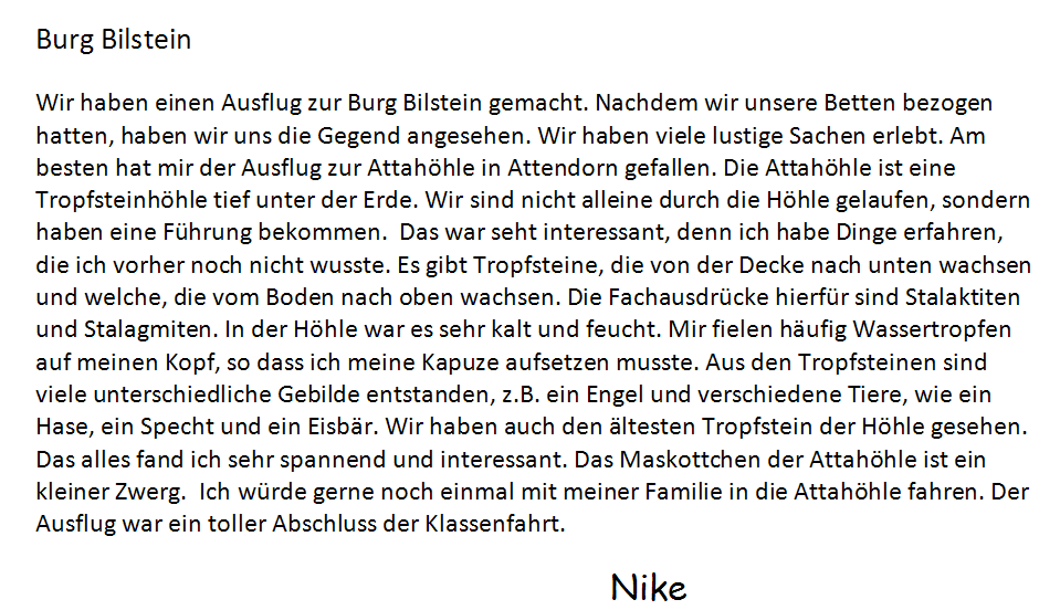 September 2012 - Unsere Klassenfahrt zur Burg Bilstein |
