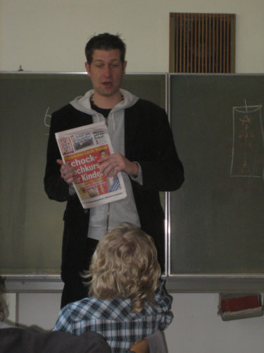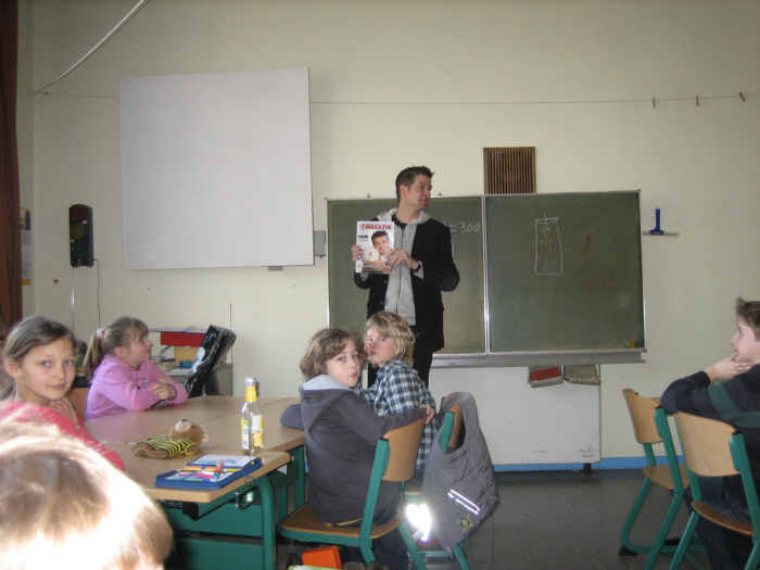 Heute hatten wir Besuch von Lars Gebhardt, dem Sohn unseres Klassenlehrers. Lars ist Fotoredakteur in der Sportagentur Witters in Hamburg. Im Deutschunterricht hatten wir besprochen, wie Zeitungen und Zeitschriften gemacht werden. Lars erzählte uns über seine Arbeit und Aufgaben als Fotoredakteur.
