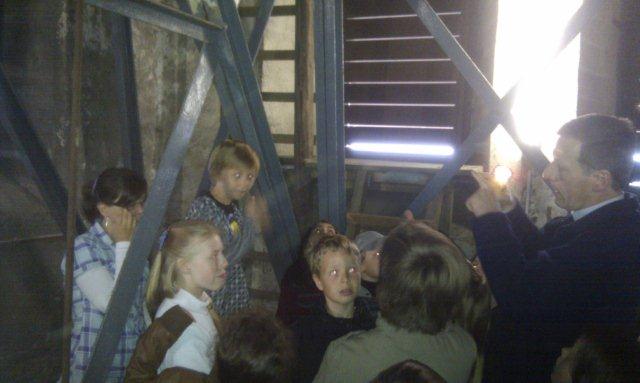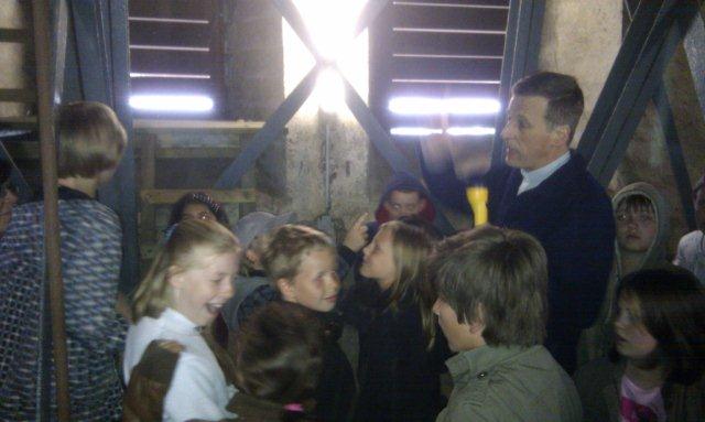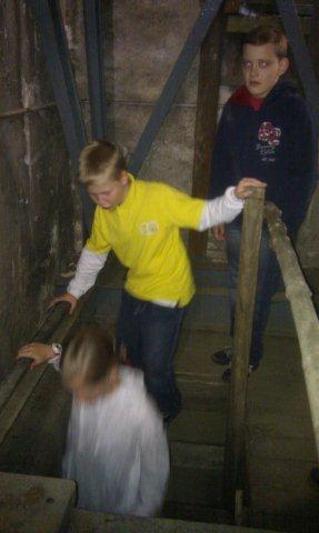 Bilder zeigen, wie wir den Glockenturm besteigen.
