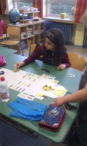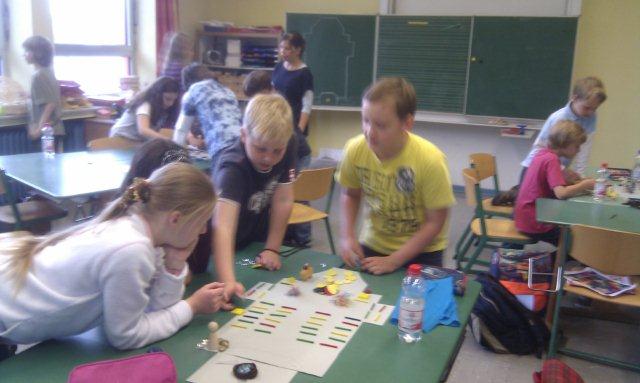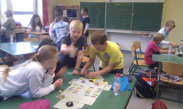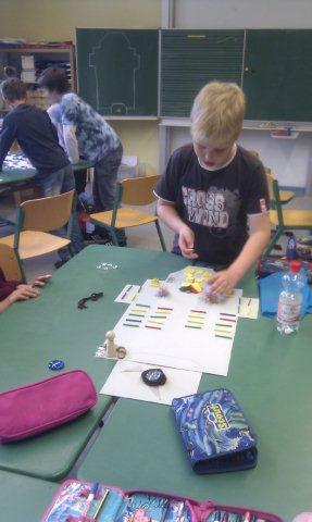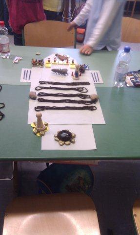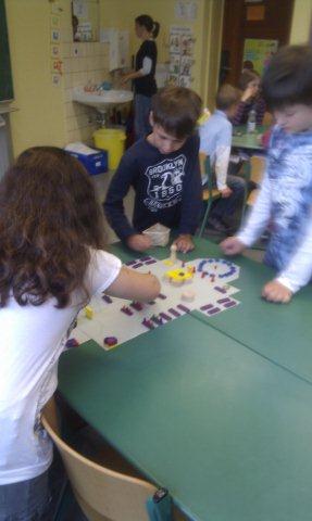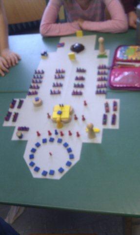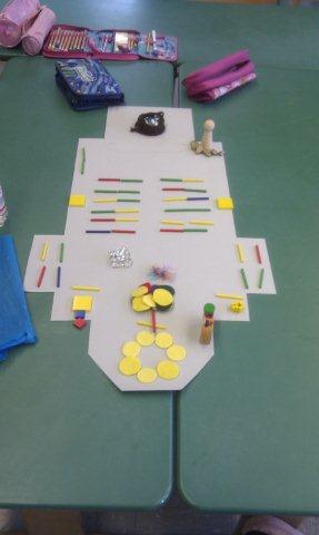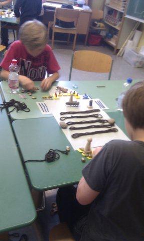 Legematerialien auf dem Kirchengrundriss nachgelegt.