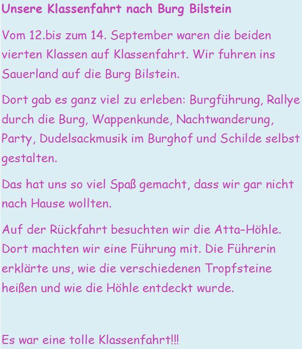 12. bis 14. 09. 2012 - Unsere Klassenfahrt