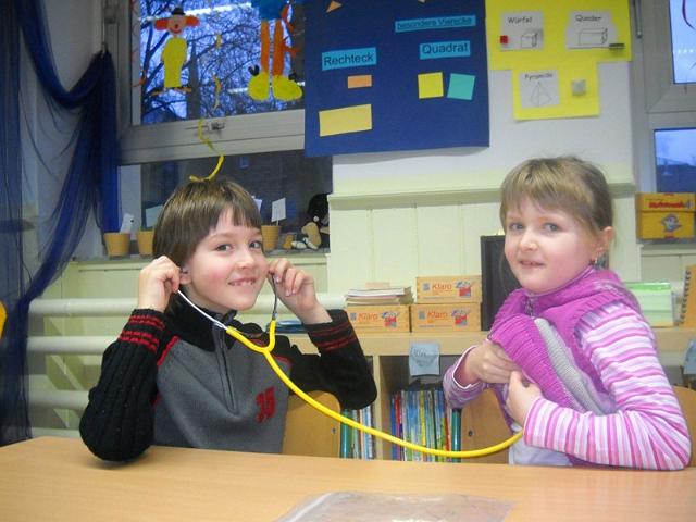Wir haben das Stethoskop kennen gelernt und unseren Herzschlag gehört.