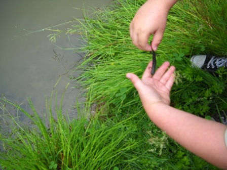 Später sind wir zum Teich gegangen und haben sie ausgesetzt.