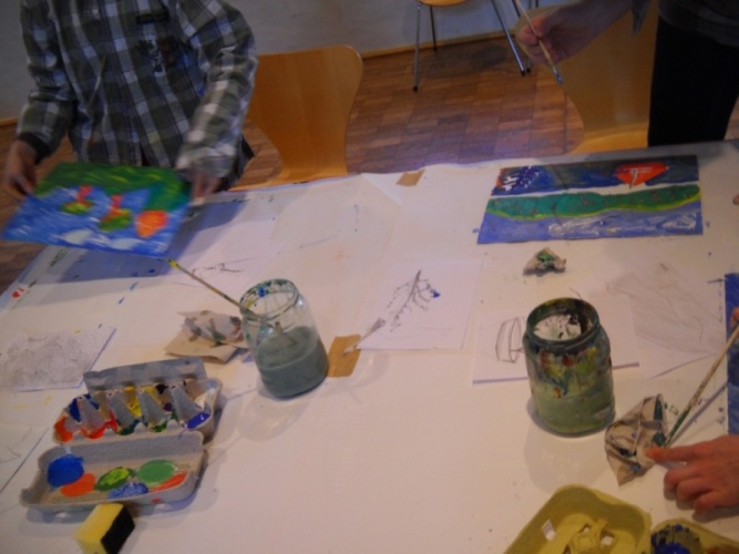 etwas über Farben gelernt, ihre Wirkungen im Zusammenspiel erkannt sowie Maltechniken analysiert.
