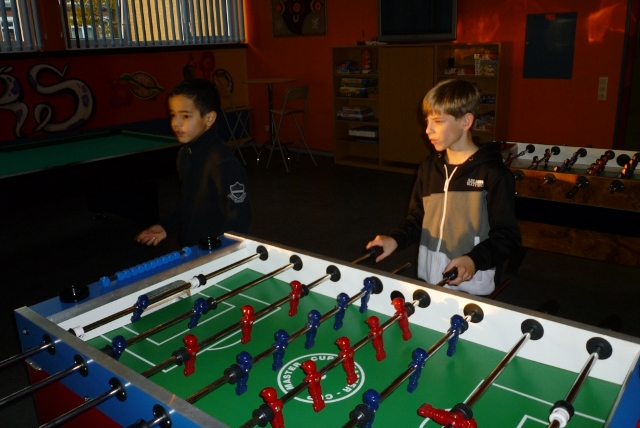 Mittagessen, kickern, Billiard spielen, auf den Schulhof gehen und Wii oder Playstation spielen.