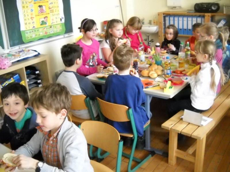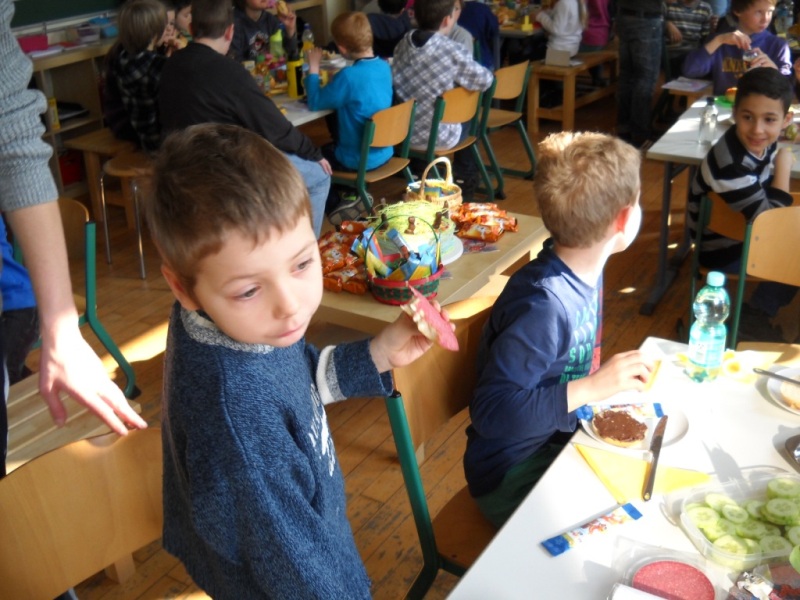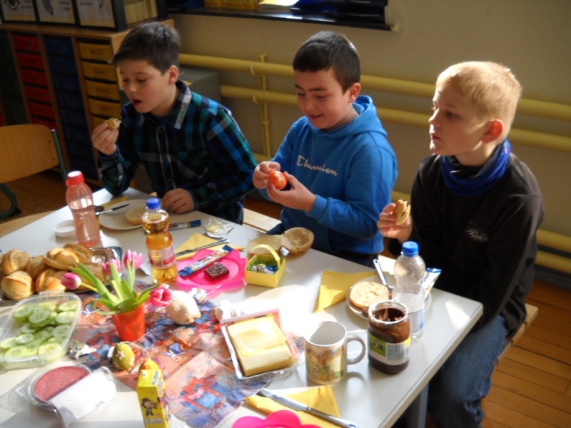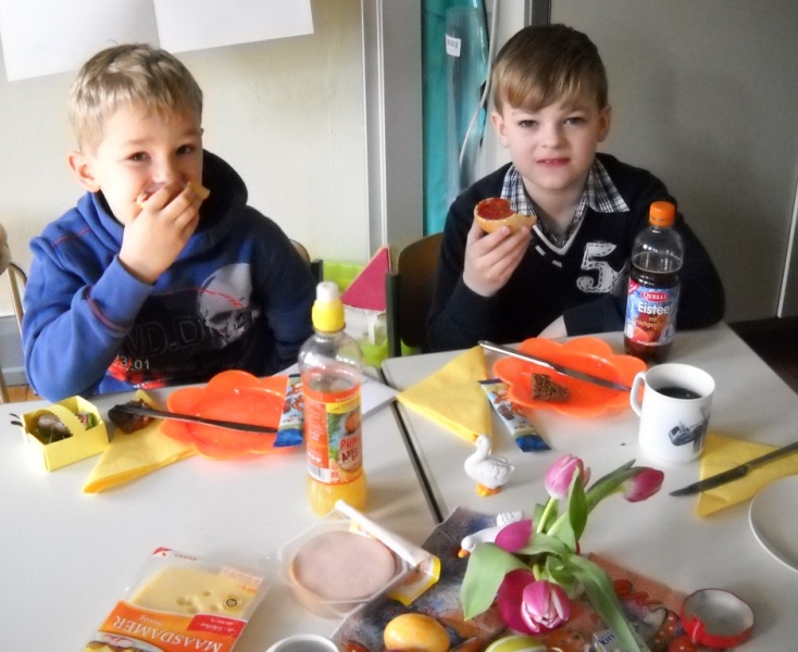 Heute haben wir unsere Paten, die Klasse 4b, zum Osterfrühstück eingeladen.