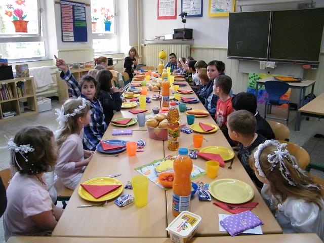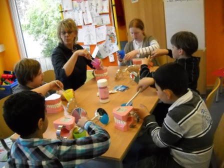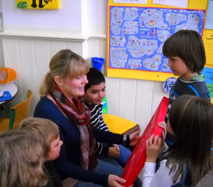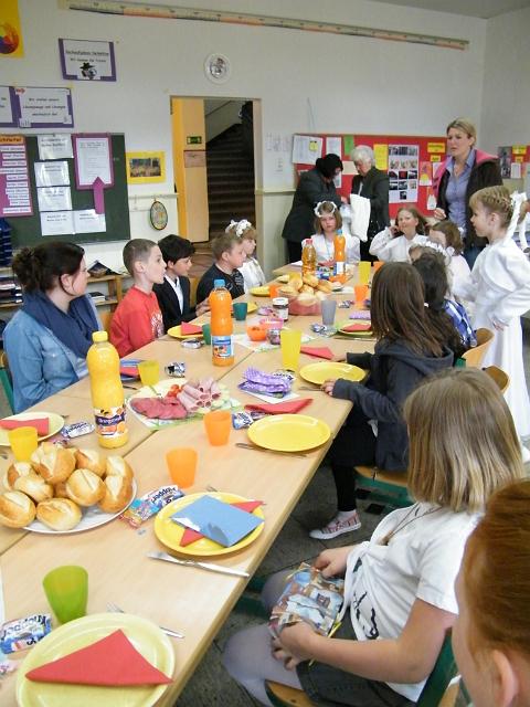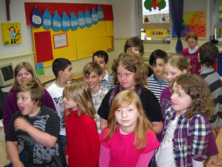 Klasse 4b mit ihren Patenkindern aus der 1b
