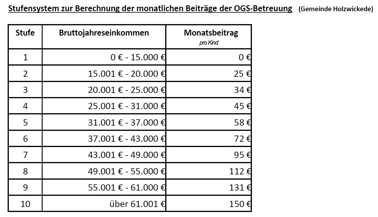 werden nach dem Beschluss der Gemeinde Holzwickede einkommensabhängig