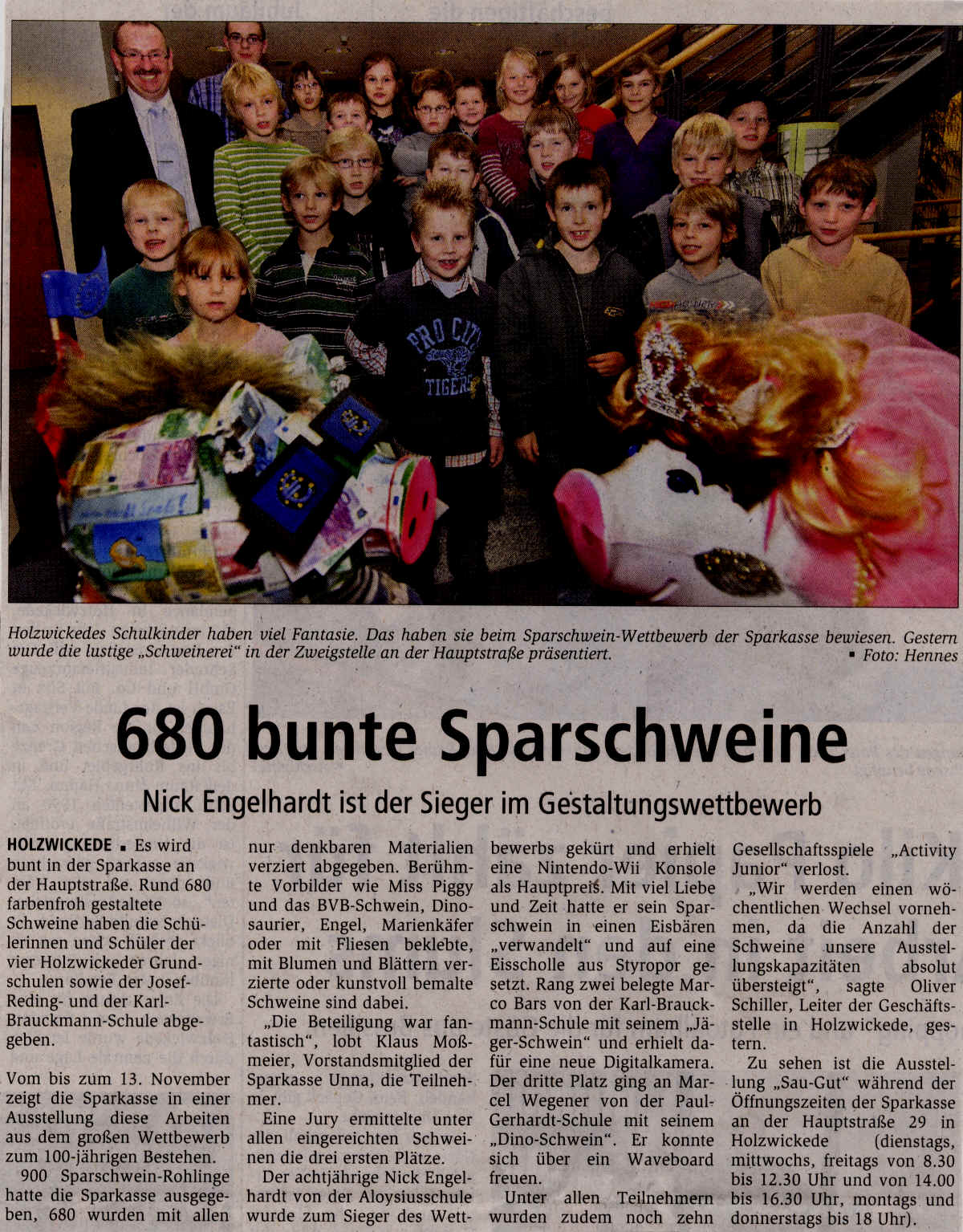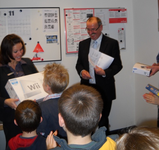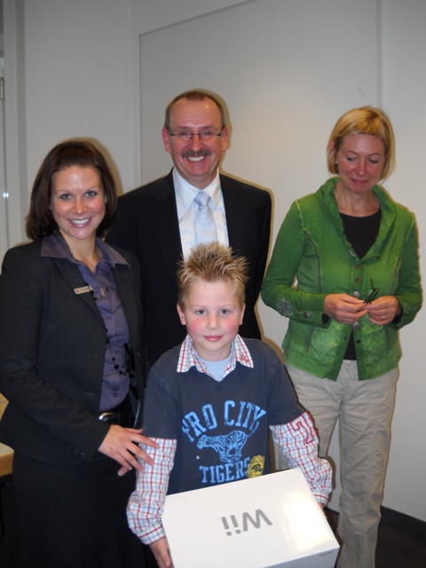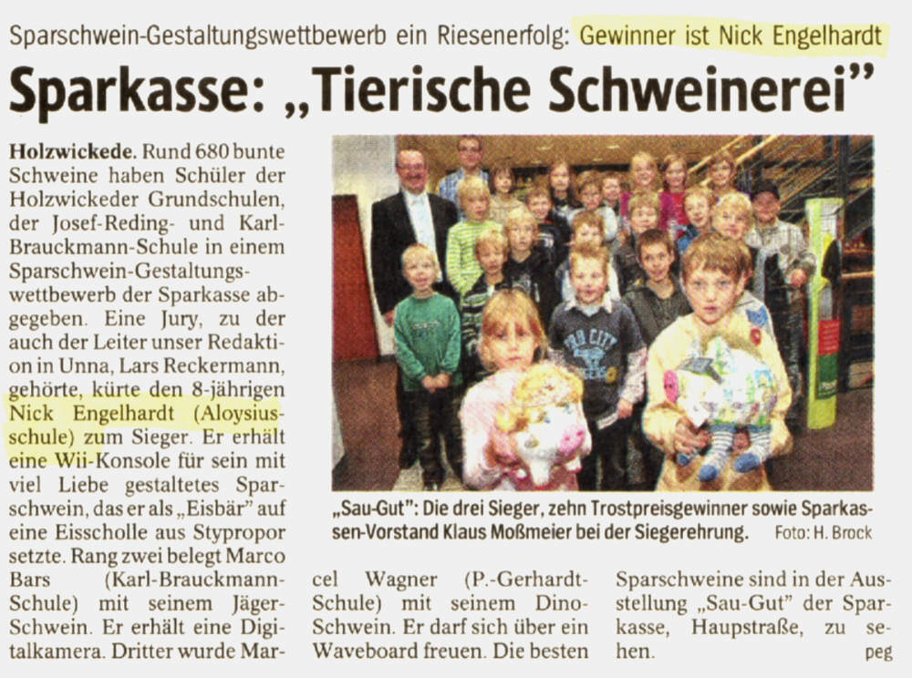 Nick aus der Klasse 3a der Aloysiusschule gewinnt den Wettbewerb der Sparkasse.