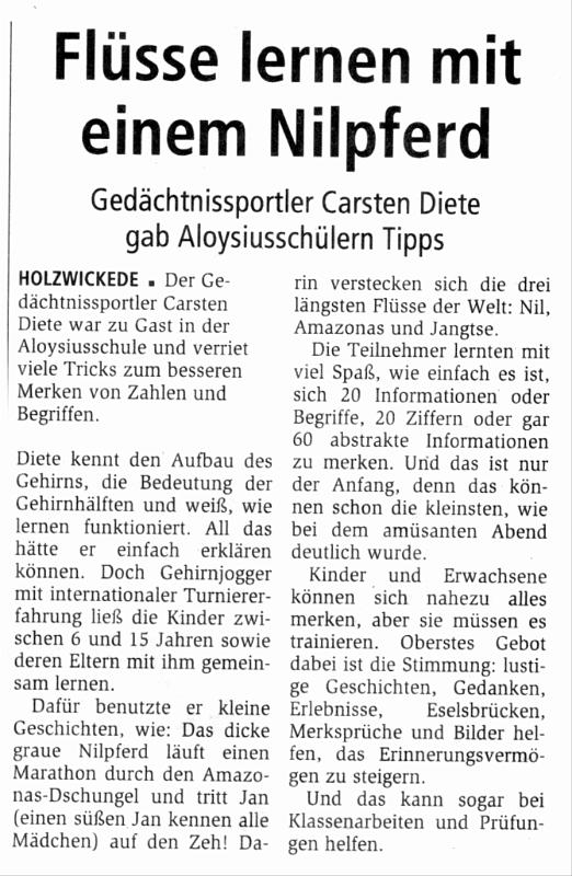 Mai 2010 - Gedächtnissportler Carsten Diete zu Gast ...