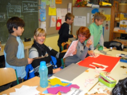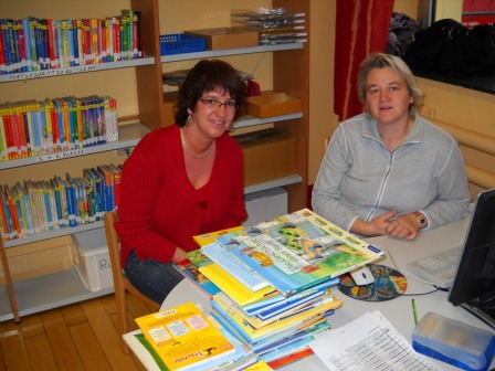 Frau Strege und Frau Palberg, die auch an so einem Tag neue Bücher inventarisieren (Familie Joch ein herzliches Dankeschön für 30 tolle Bücher!!!), .....