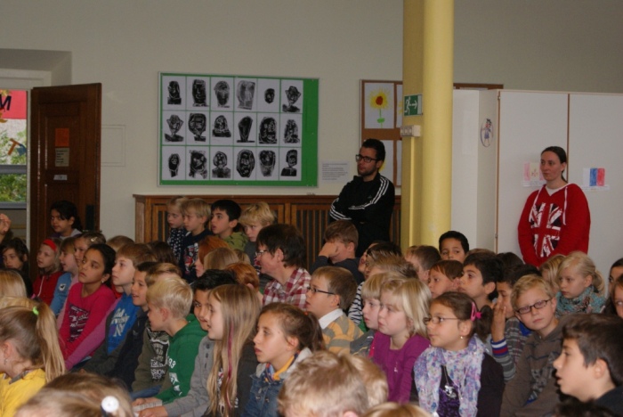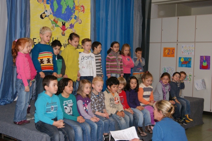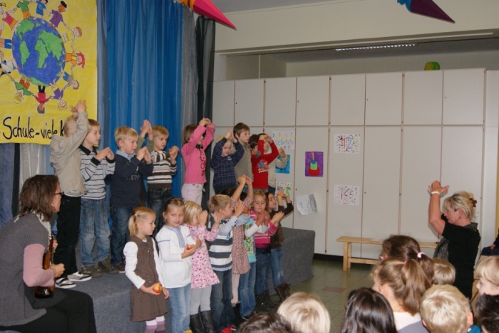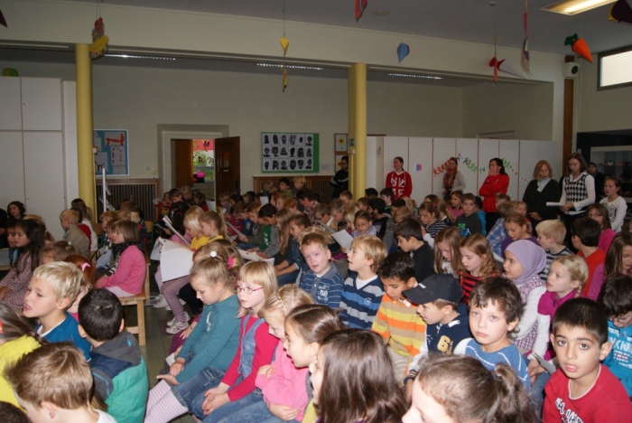 Alle Klassen haben in der Pausenhalle etwas vorgetragen und