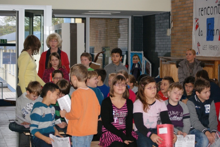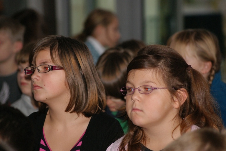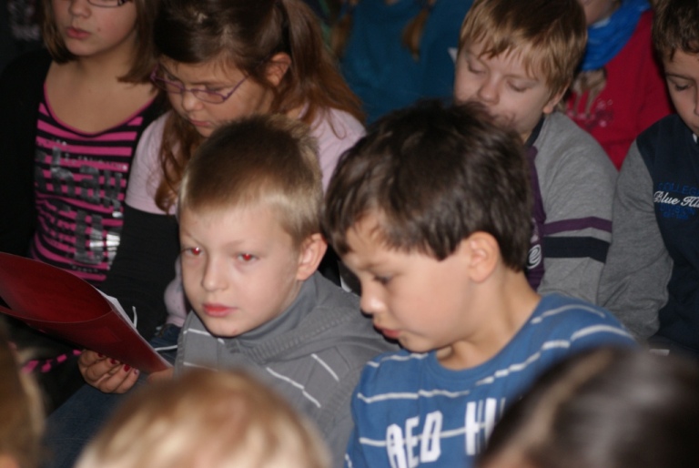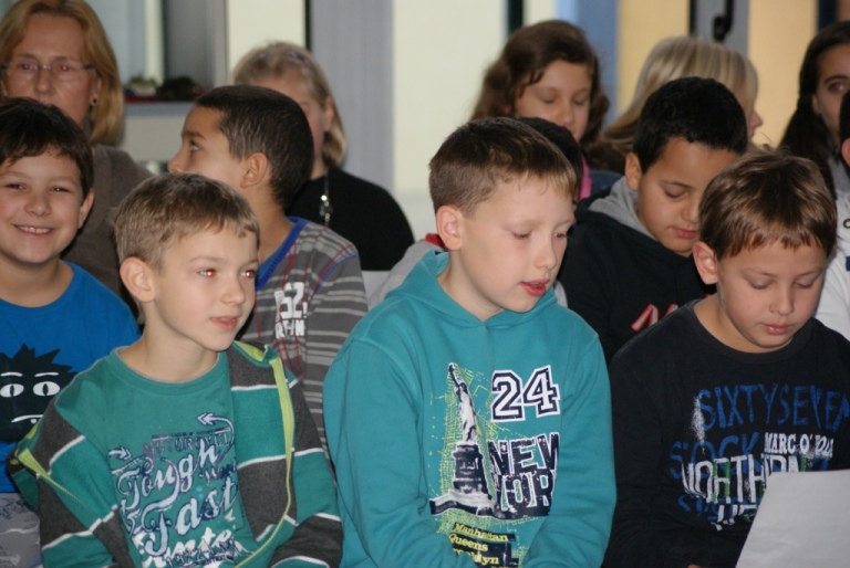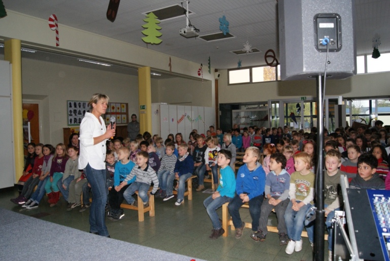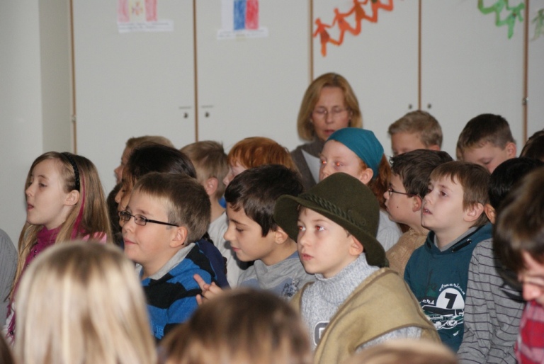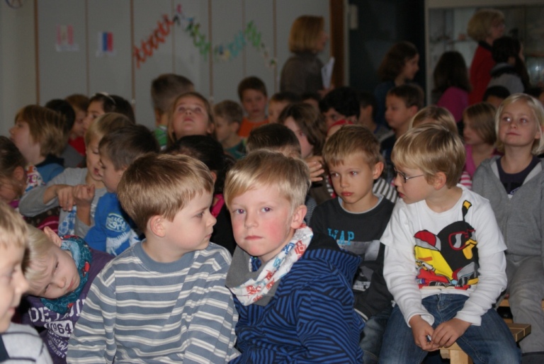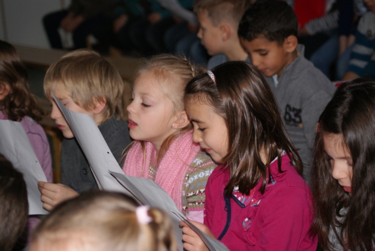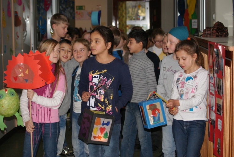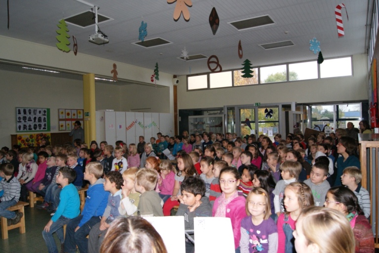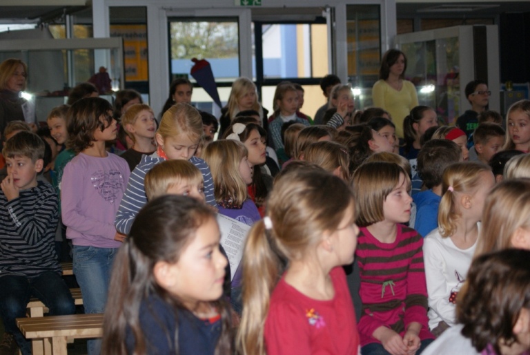 Alle Klassen haben sich in der Pausenhalle getroffen und Martinslieder gesungen.