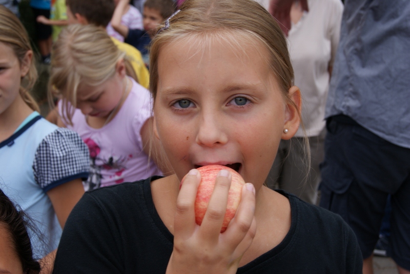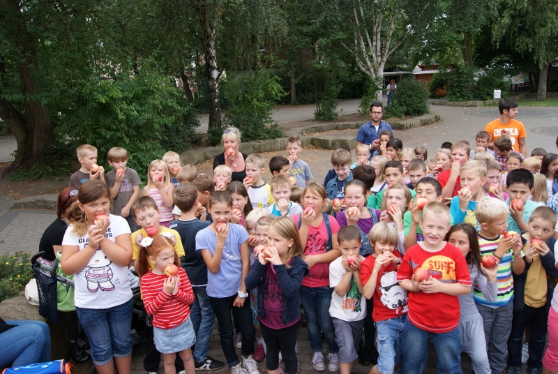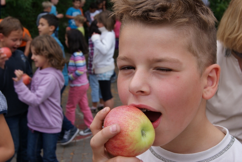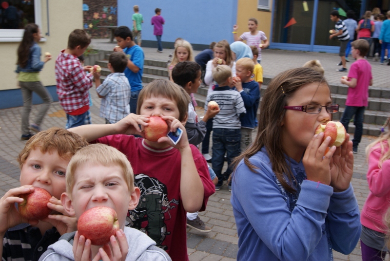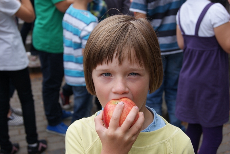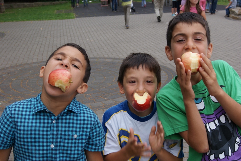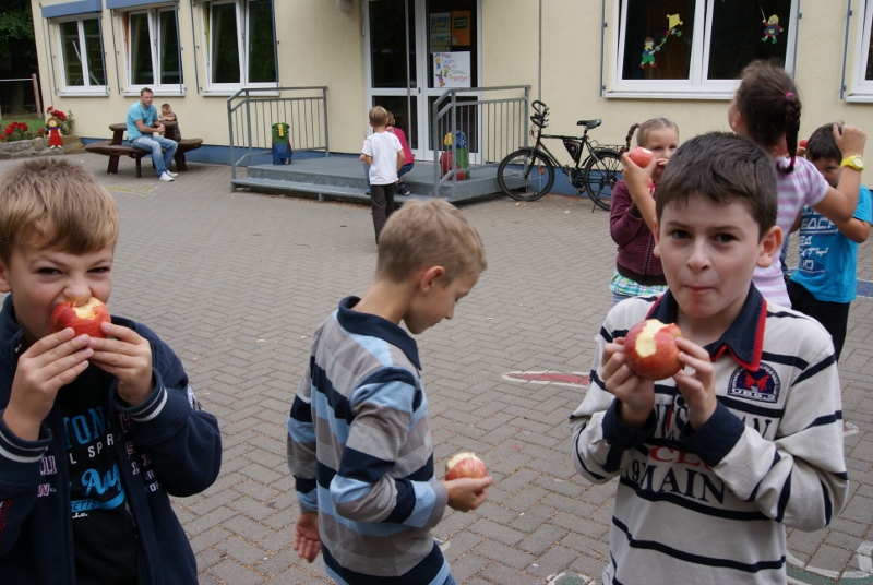 Jedes Kind bekam einen Apfel und wir haben sie um 11.00 Uhr gemeinsam gegessen.