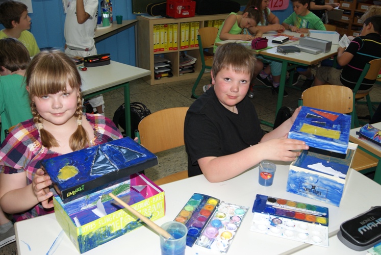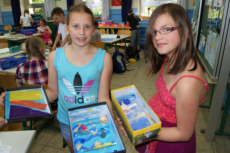 Bei der Kunstausstellung könnt ihr euch die Ergebnisse aller Klassen ganz genau ansehen.
