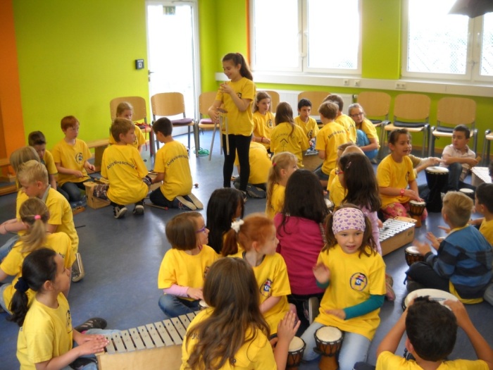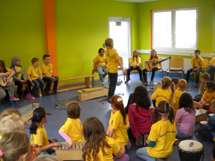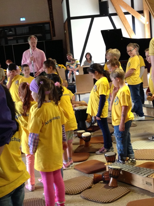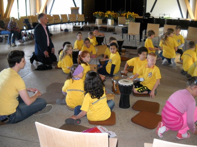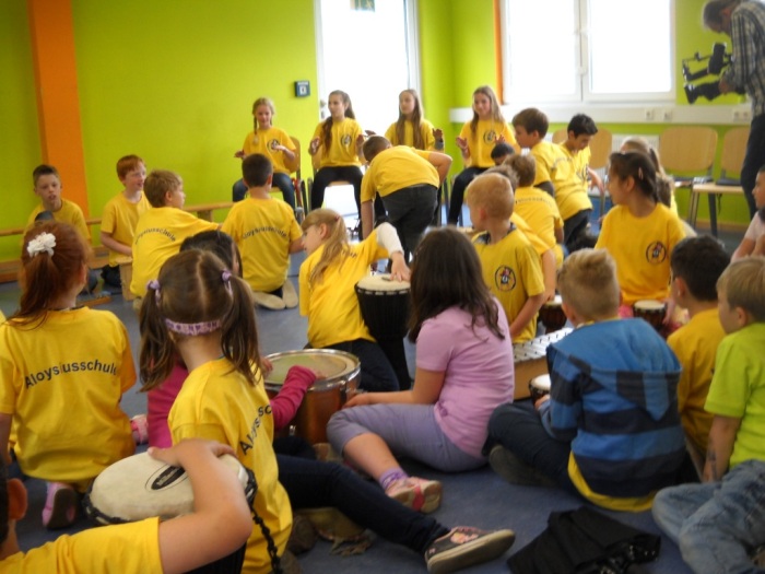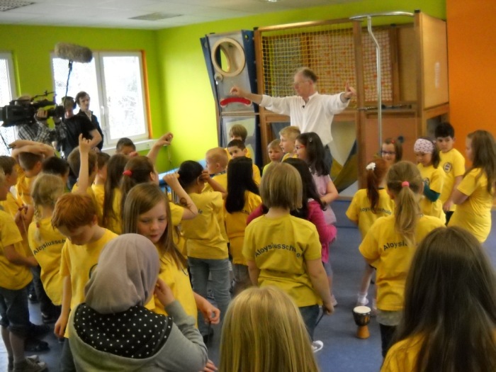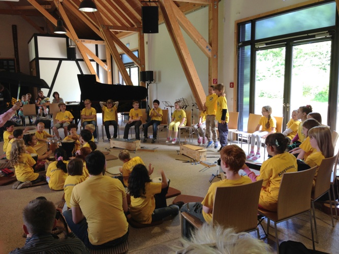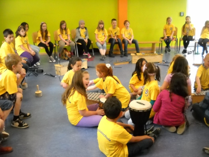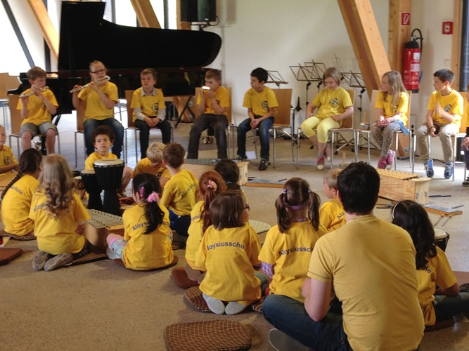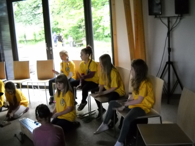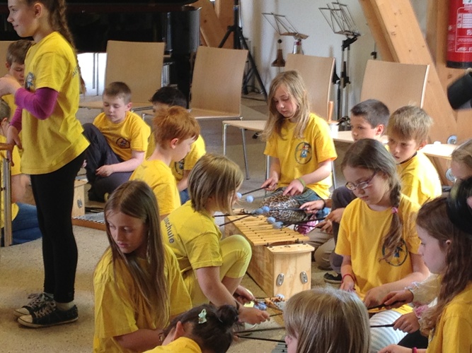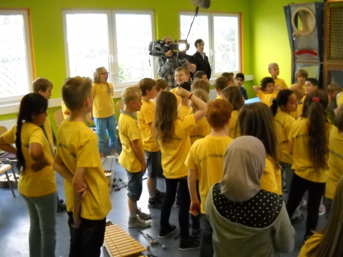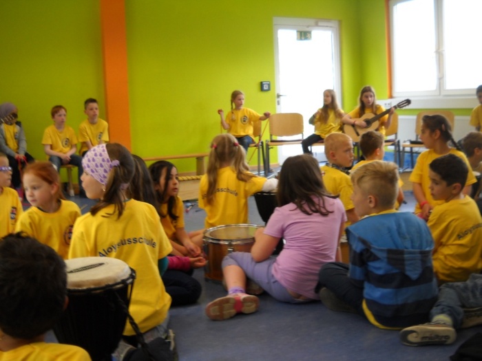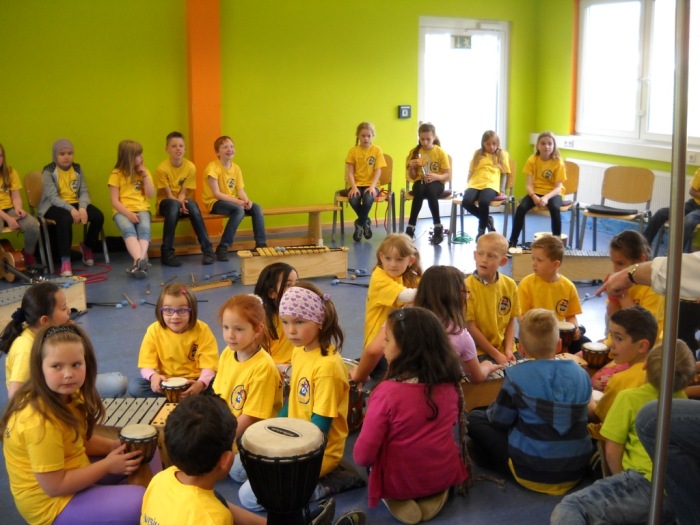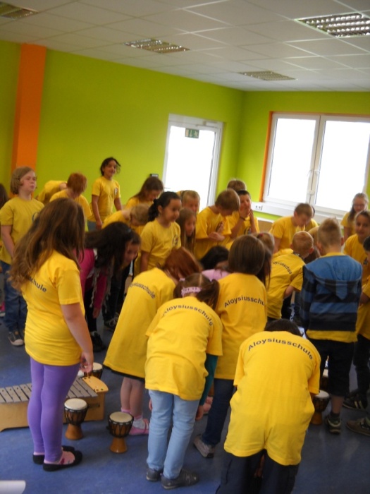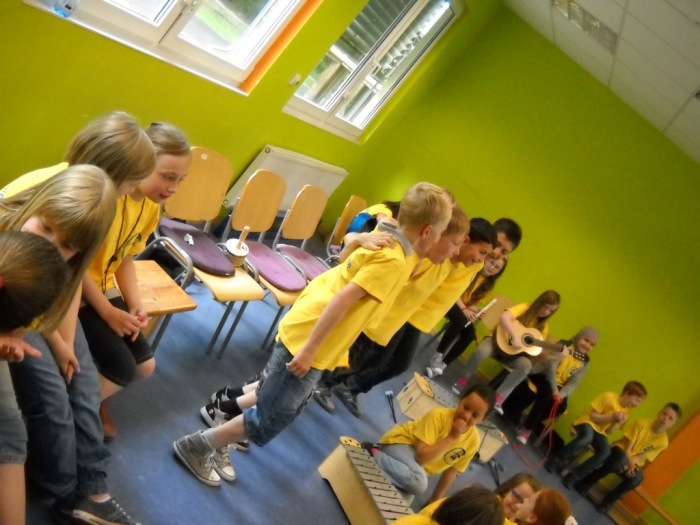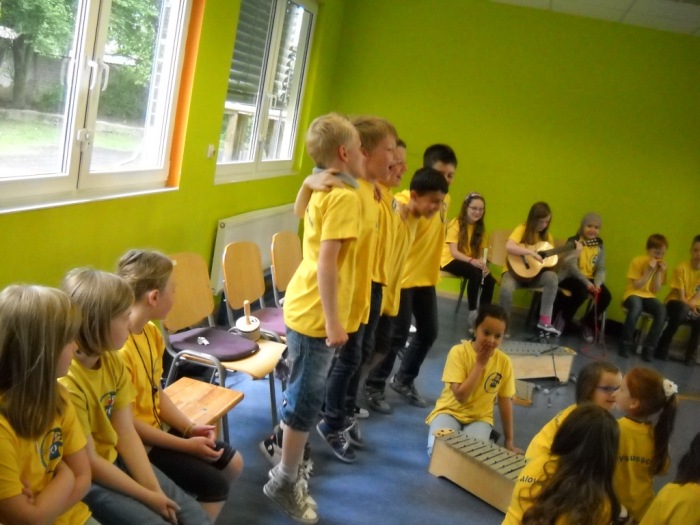 Hier seht ihr die gemeinsame Probe mit beiden Klassen.
